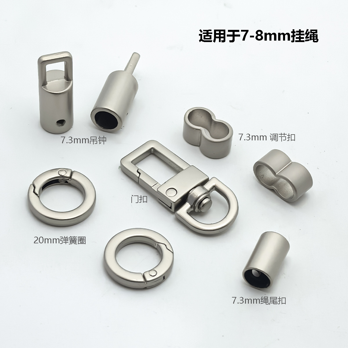 新款手机挂绳配件金属扁线弹簧圈8mm吊钟钩扣8字扣方形门扣套装