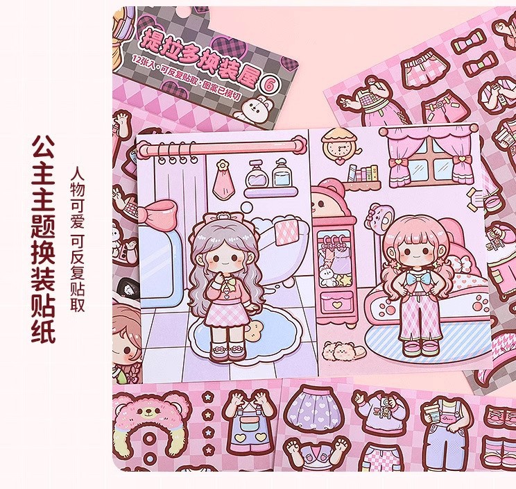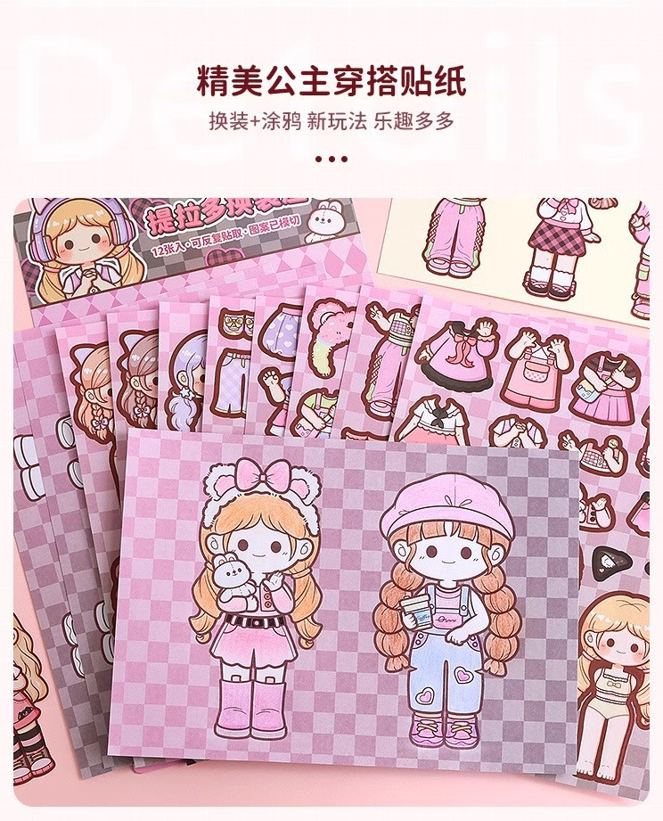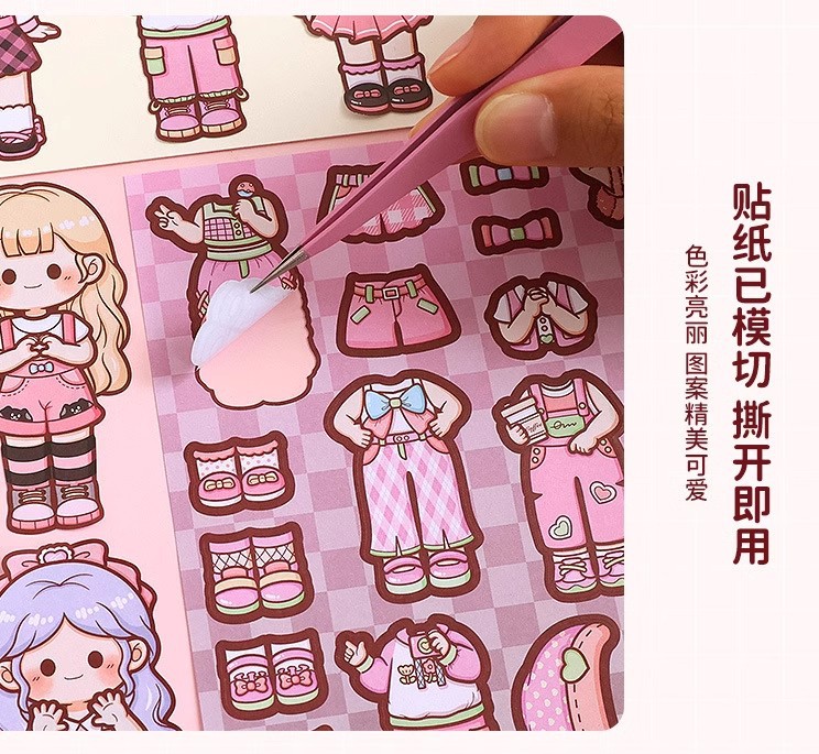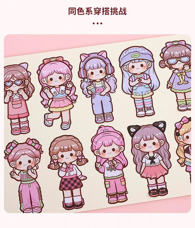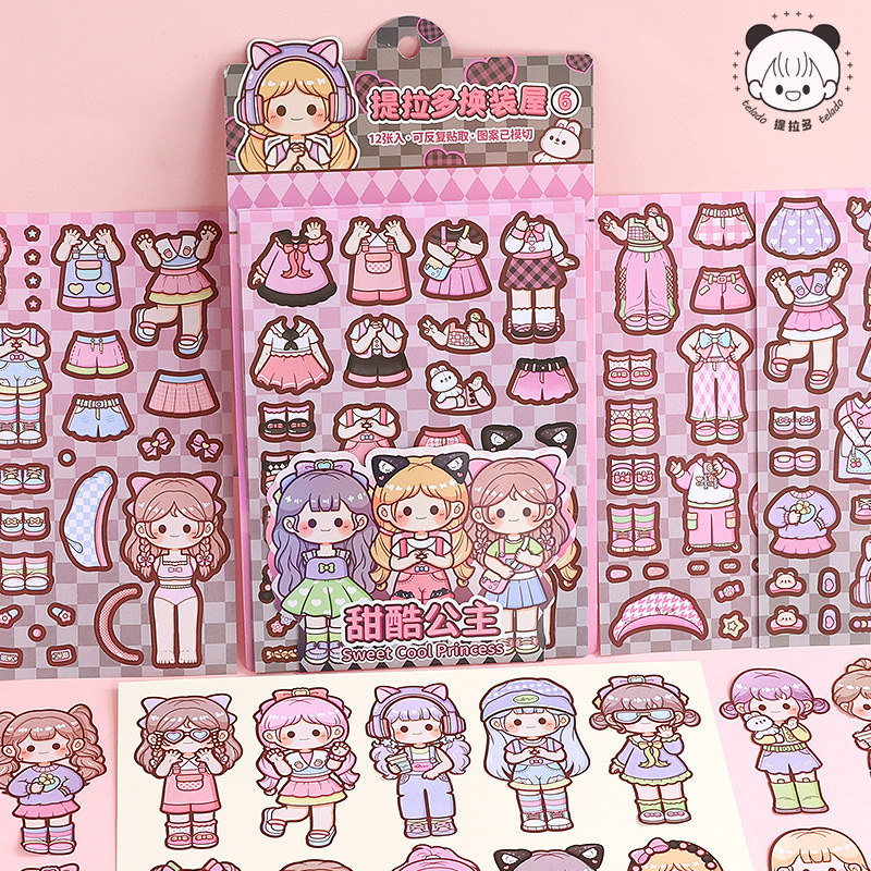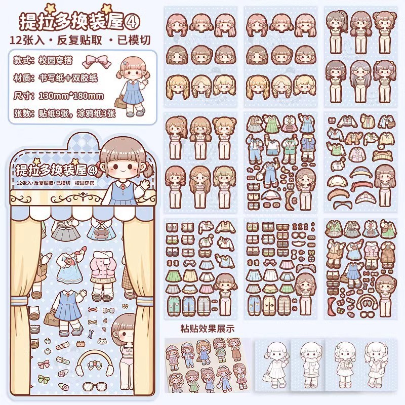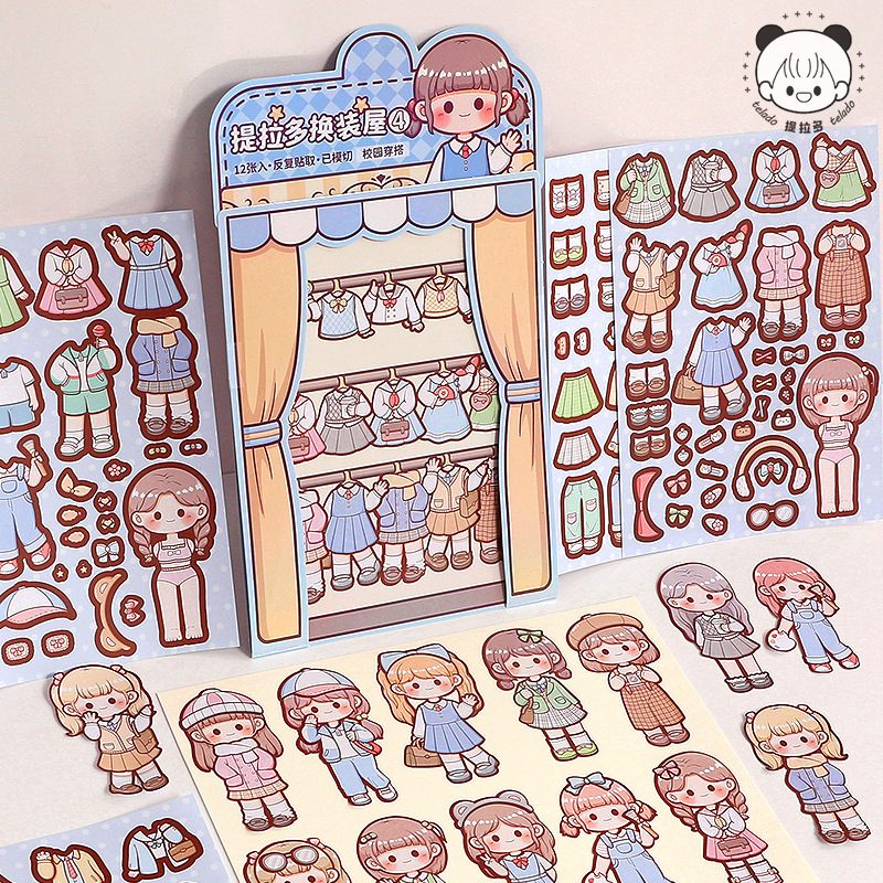 提拉多换装屋校园穿搭换装贴纸立体免裁剪人物穿搭手帐贴纸