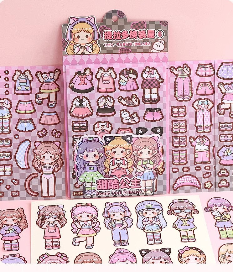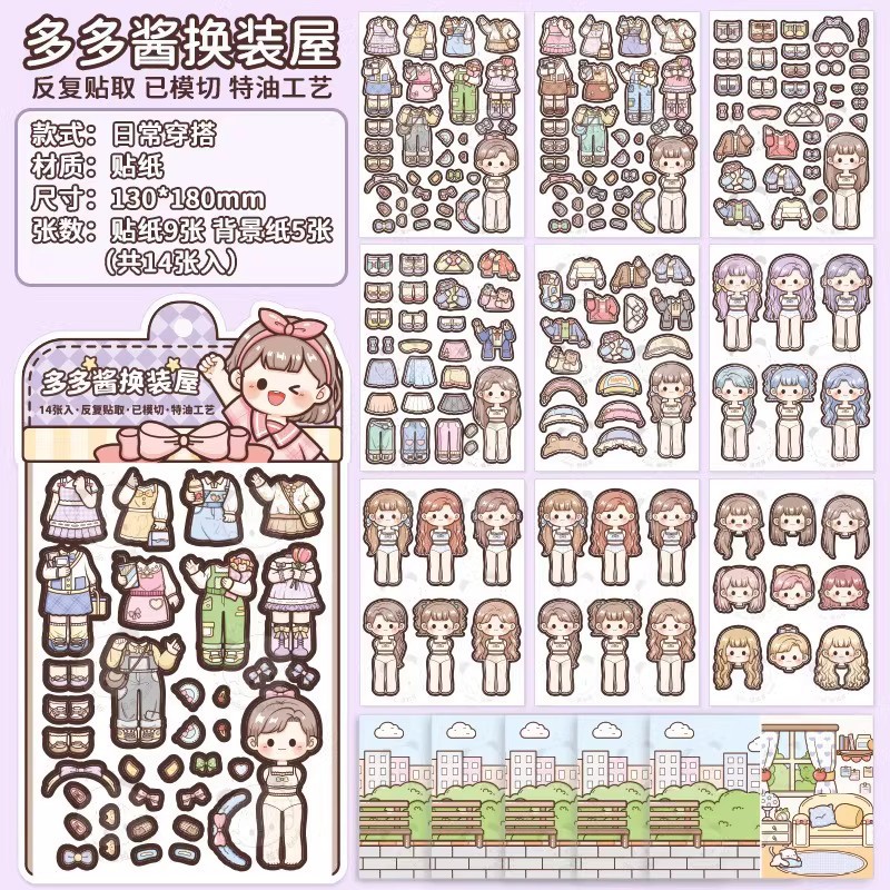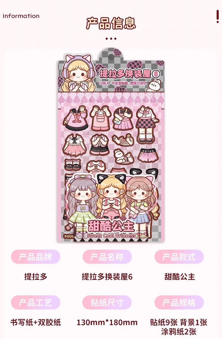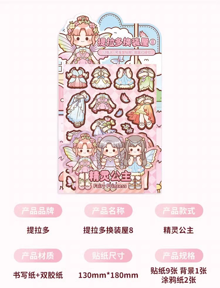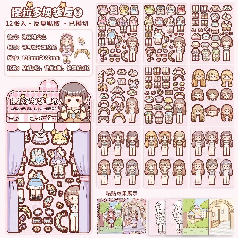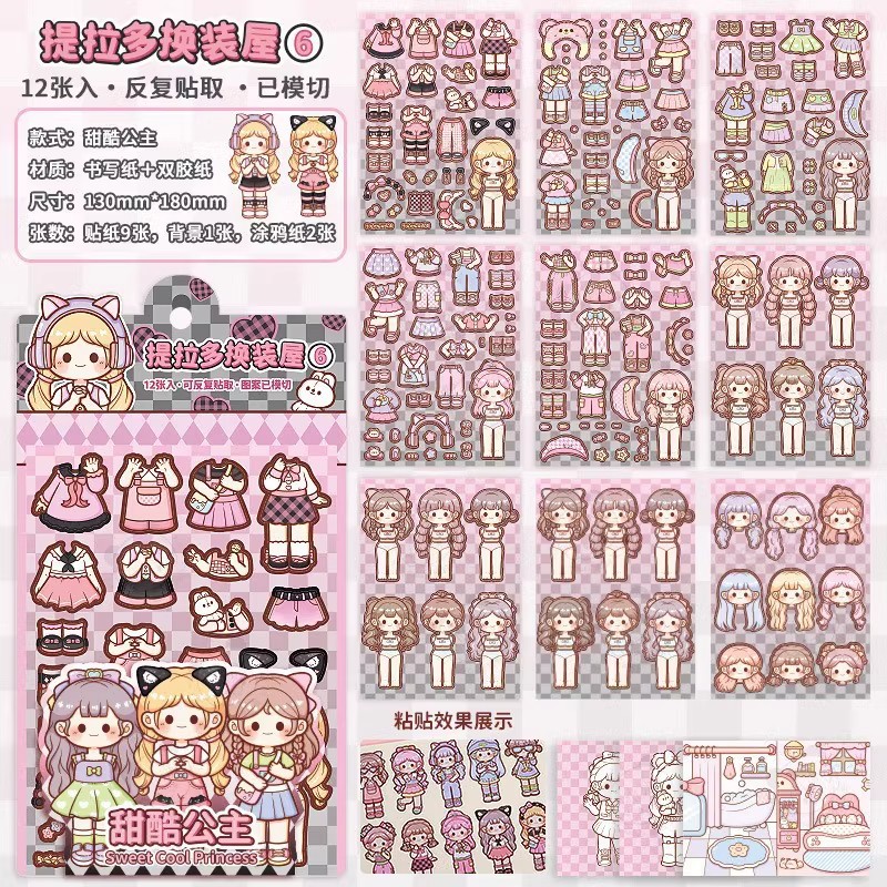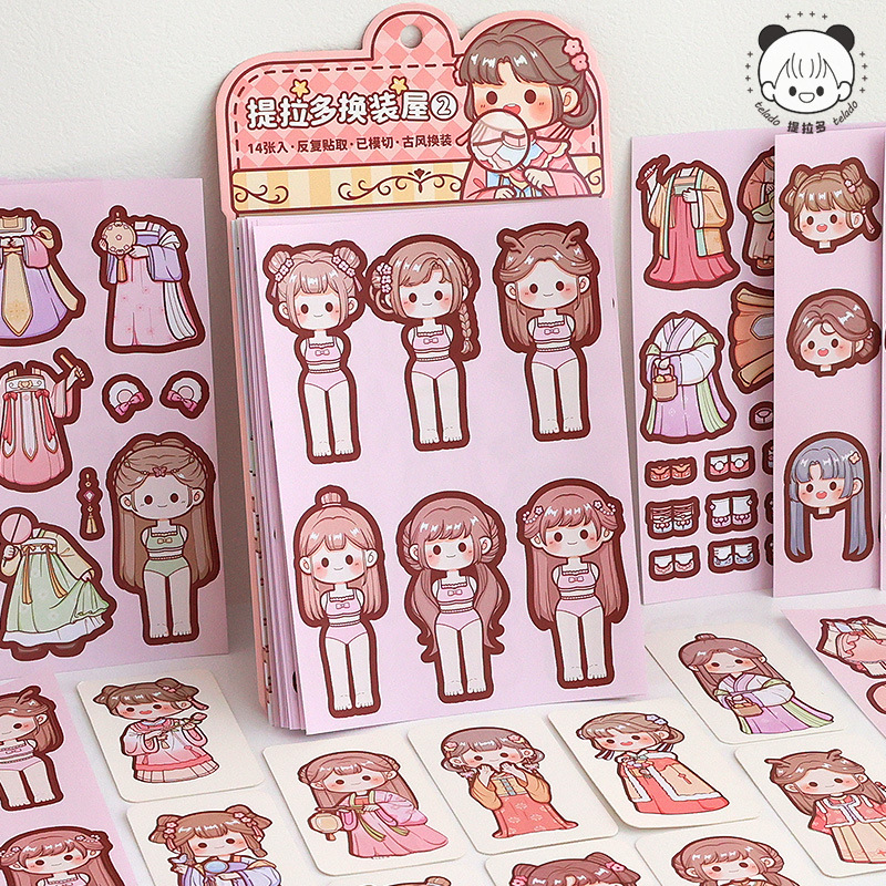 提拉多换装屋校园穿搭换装贴纸立体免裁剪人物穿搭手帐贴纸