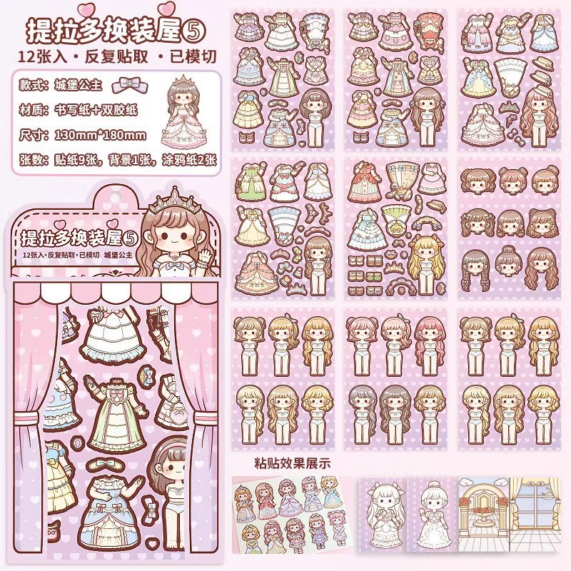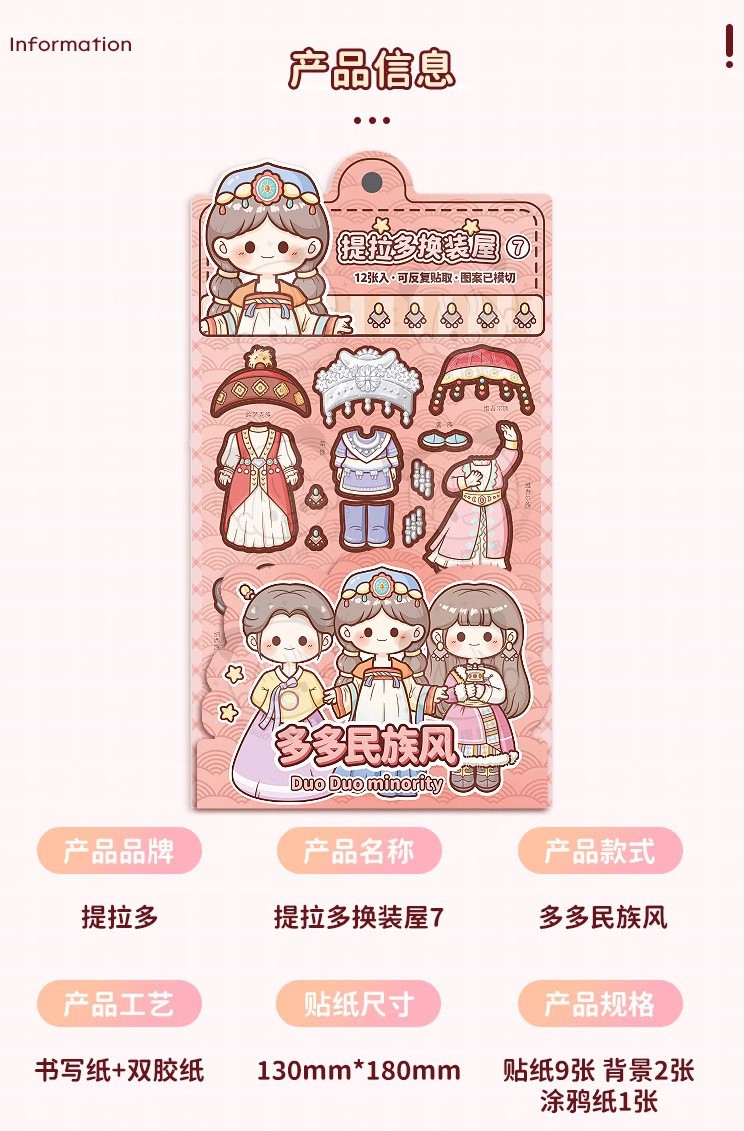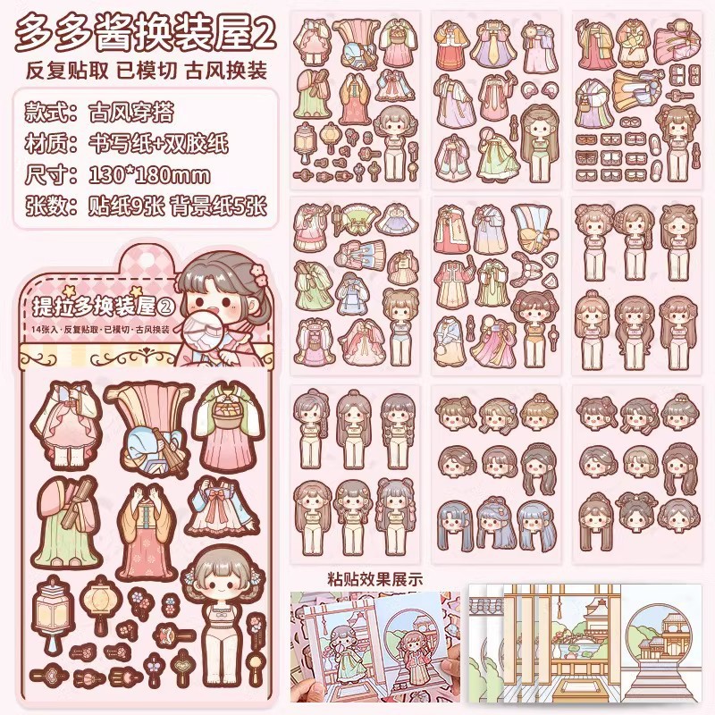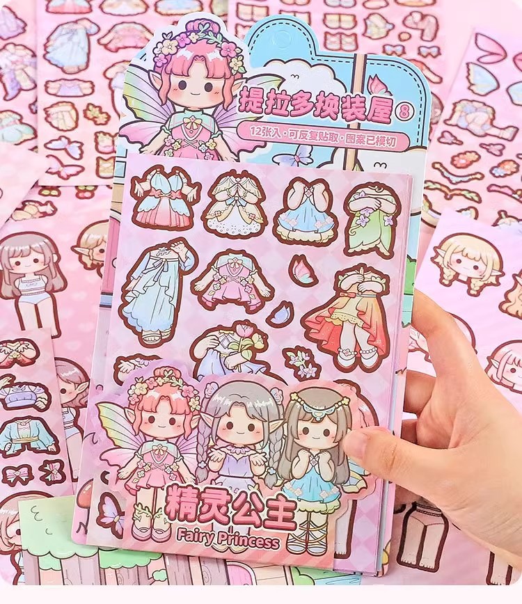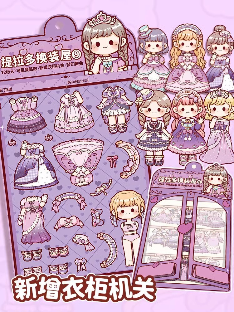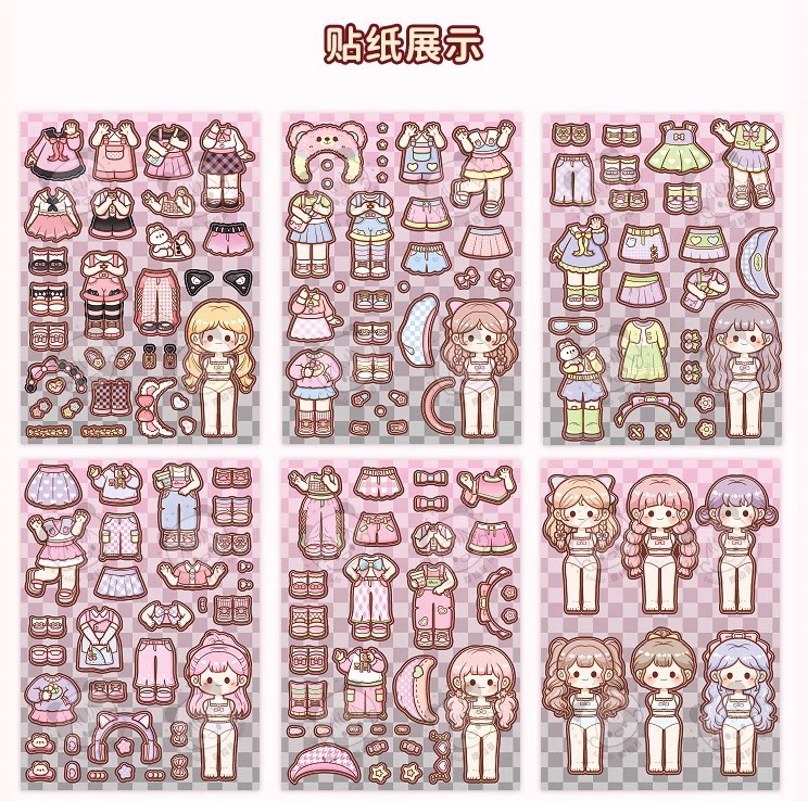 提拉多换装屋校园穿搭换装贴纸立体免裁剪人物穿搭手帐贴纸
