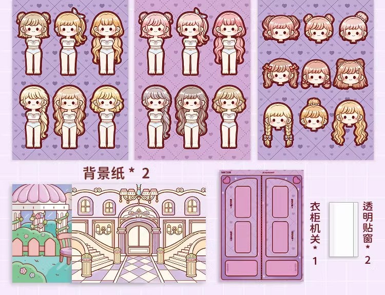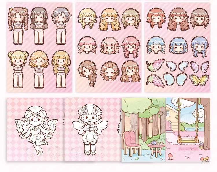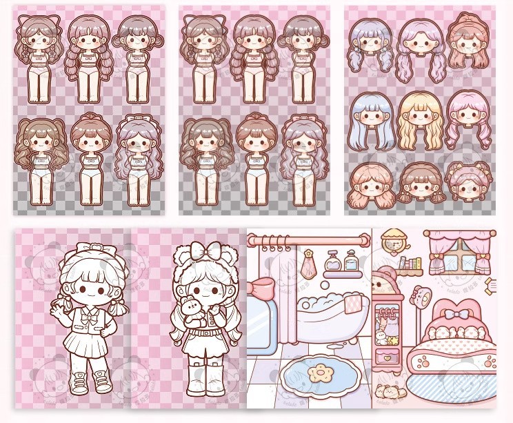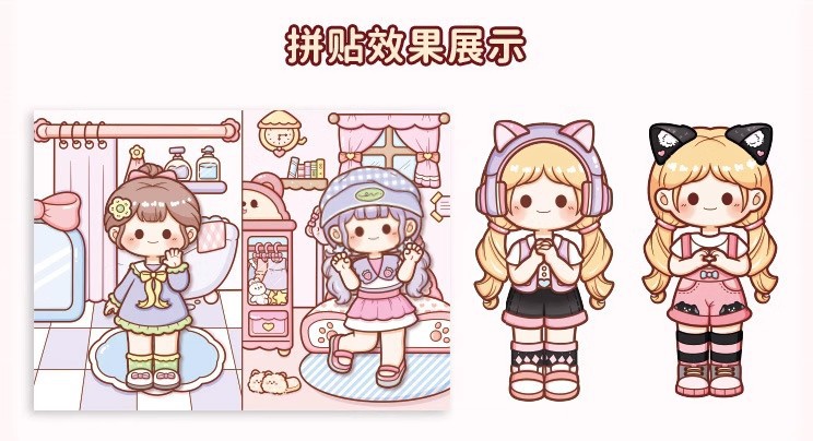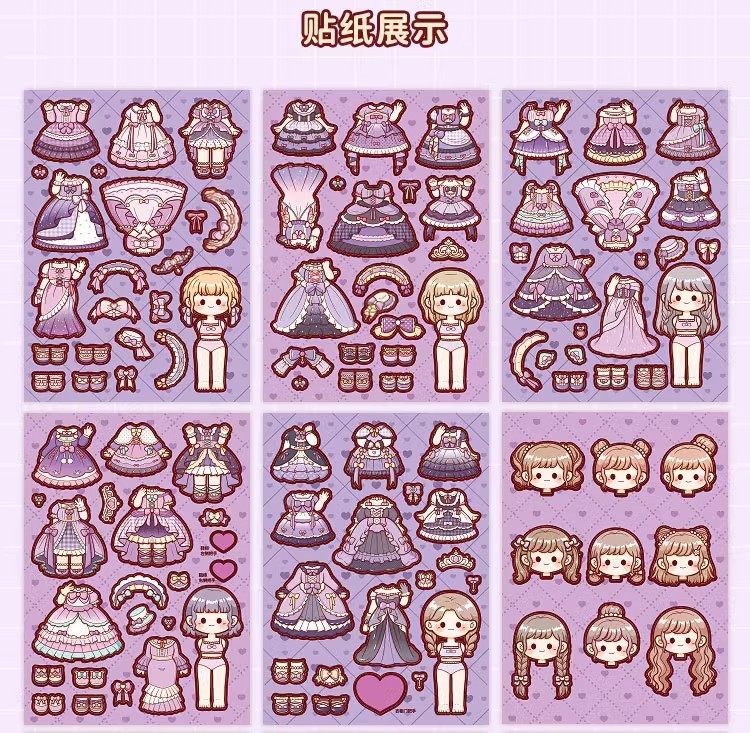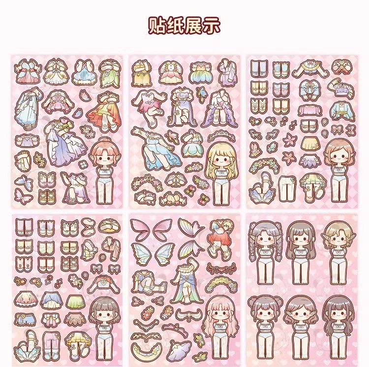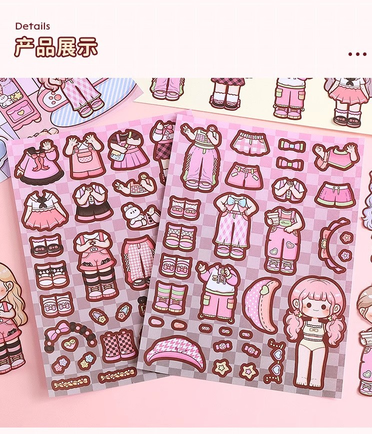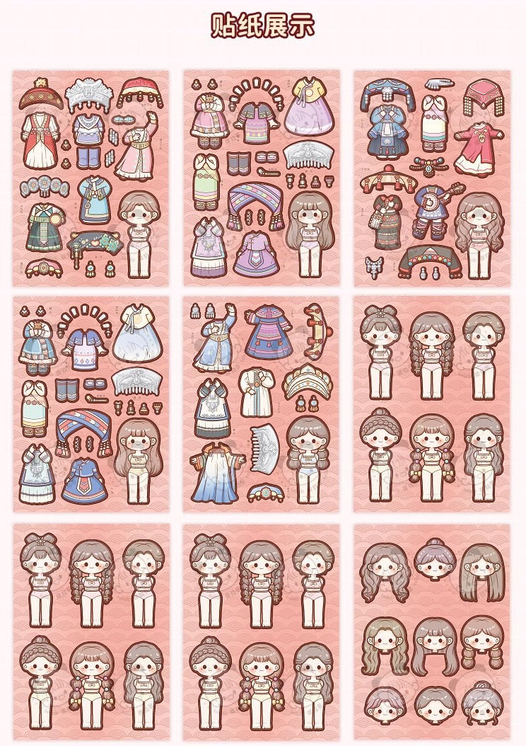 小麻薯换装豆豆本女孩儿童免裁剪卡通贴画礼物小鼻嘎贴纸手账素材