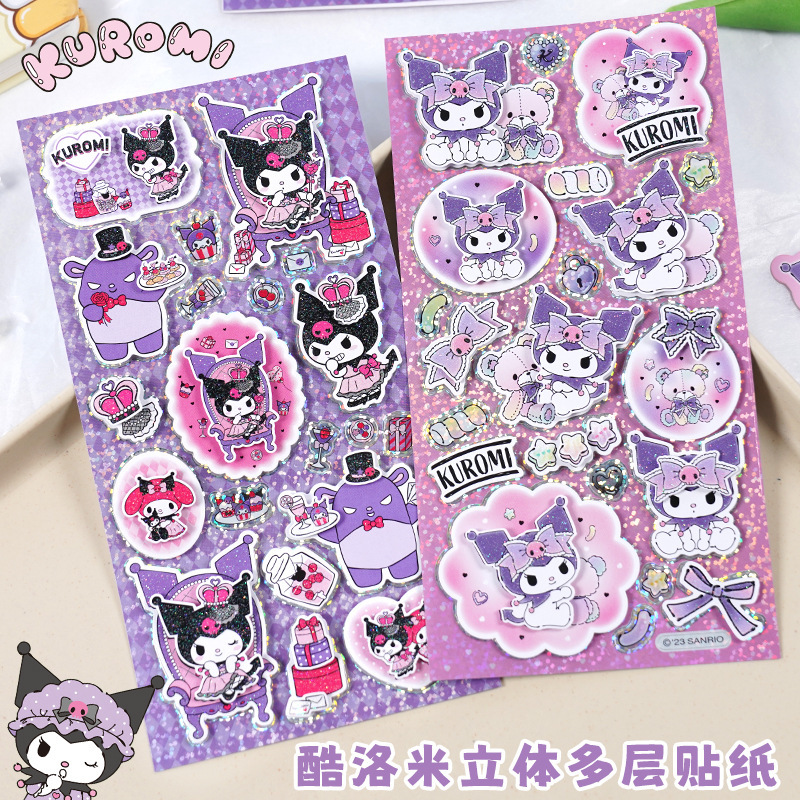 サンリオクロミ立体多層ステッカー漫画クーロミ紫小悪魔金葱粉層ステッカー