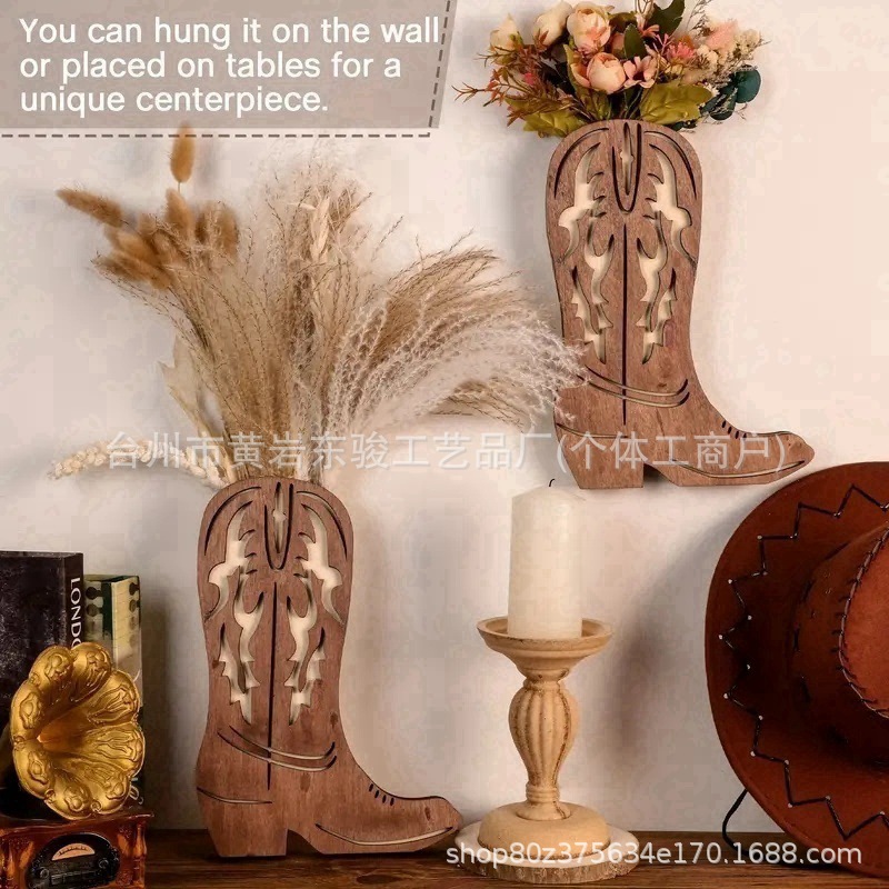 クロスボーダー木製カウボーイブーツ壁掛け植木鉢カウボーイブーツフェイクフラワー花瓶壁掛け花瓶無垢材