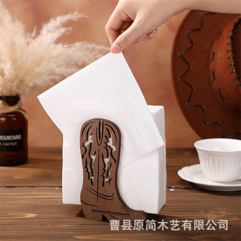 木製ペーパータオル棚食卓縦型ペーパータオル分配器創意カウボーイブーツペーパータオル箱透かし彫り実木ナプキン棚