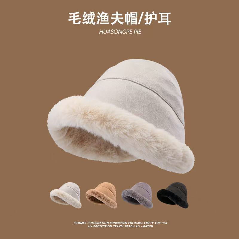ぬいぐるみ漁師帽冬保温耳保護帽日系ネット赤とベルベットの厚いベルベットの帽子