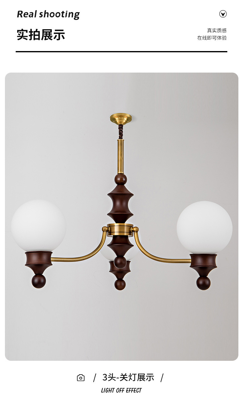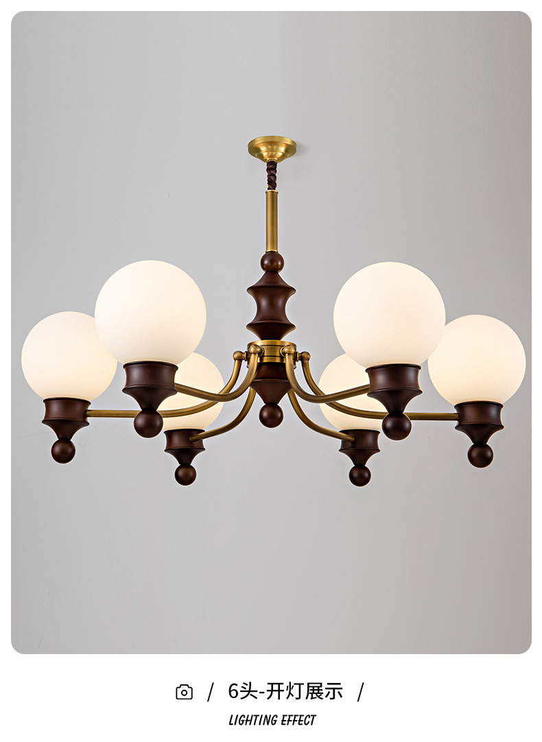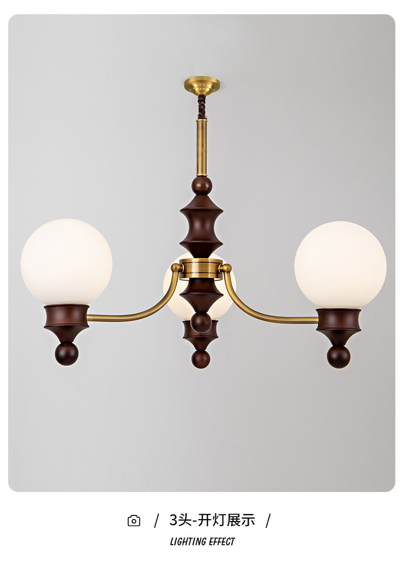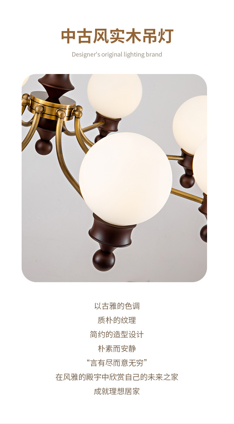 中世スタイルのレストランシャンデリアクルミ色のわびさびスタイルのハイエンドレトロダイニングテーブルティールームワンワードランプ中山ランプ