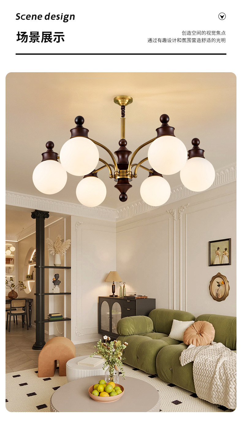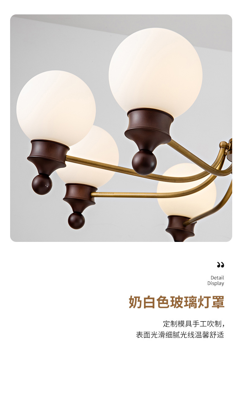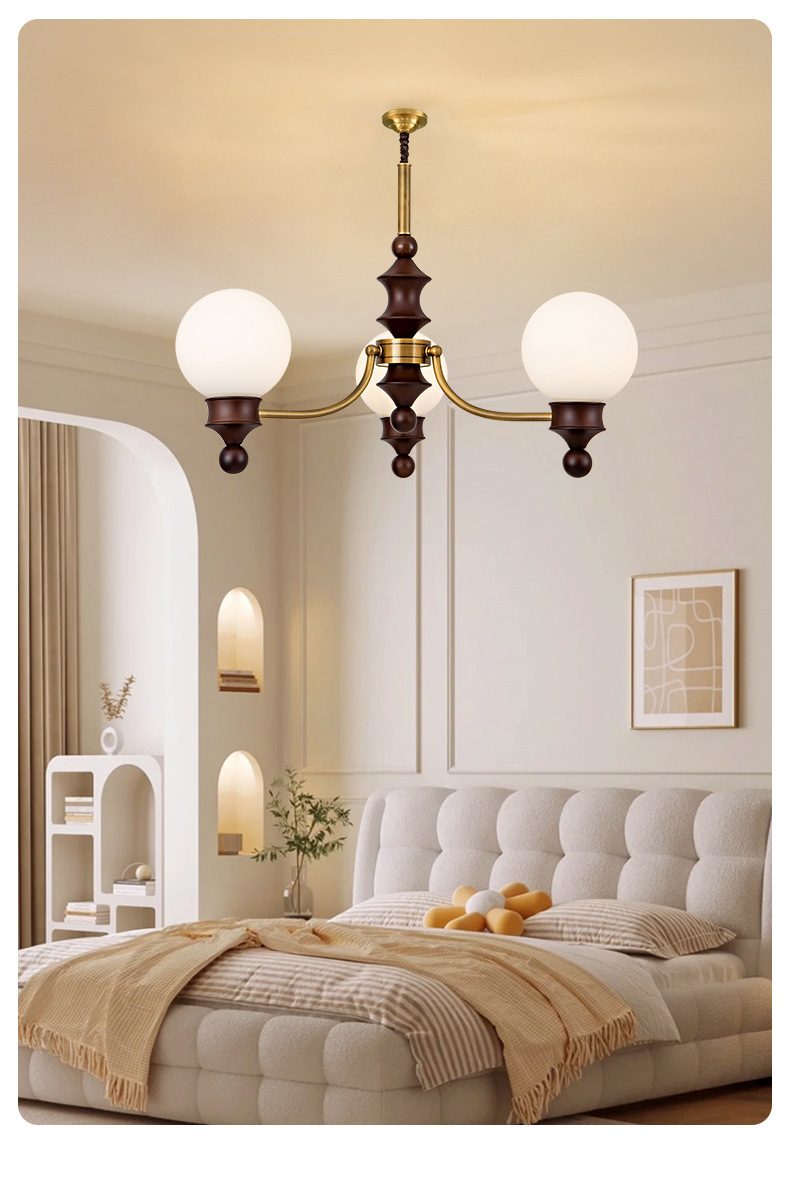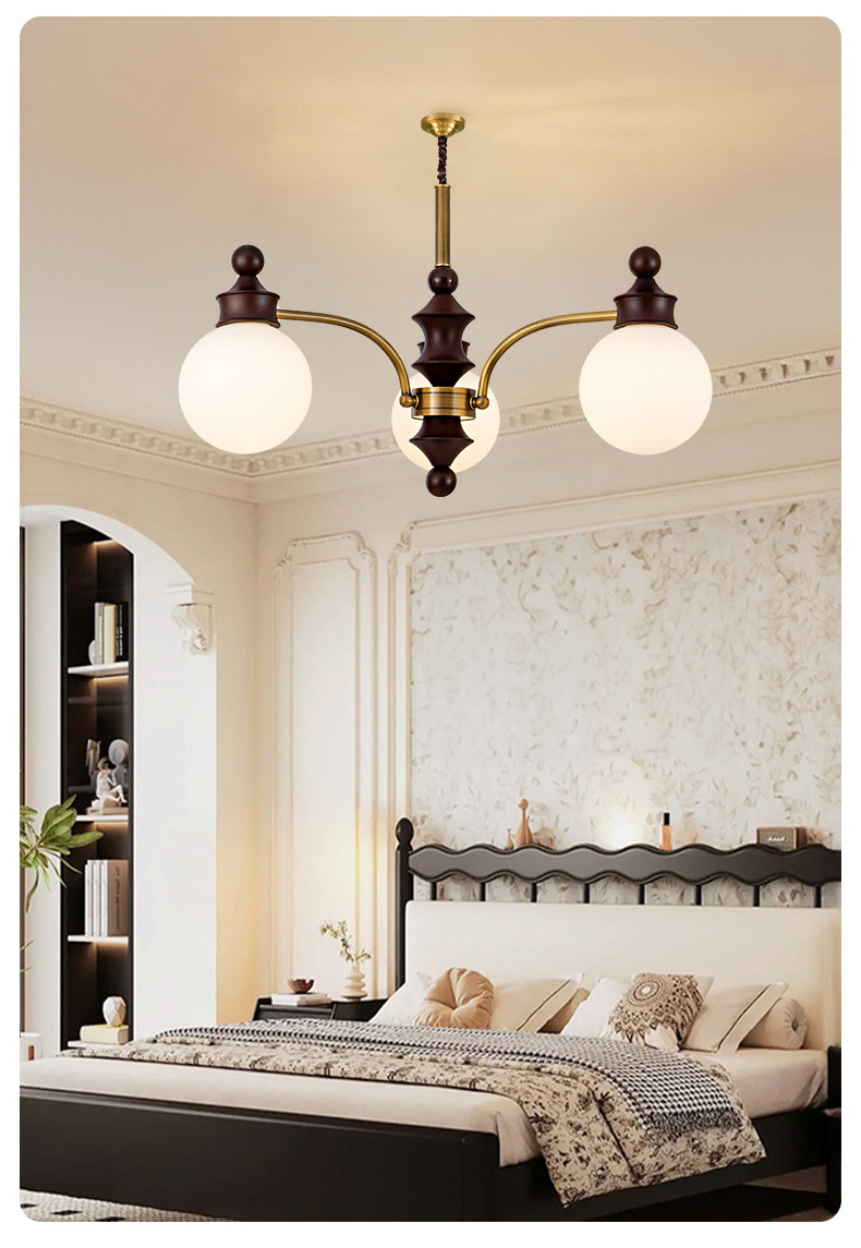 中世スタイルのレストランシャンデリアクルミ色のわびさびスタイルのハイエンドレトロダイニングテーブルティールームワンワードランプ中山ランプ