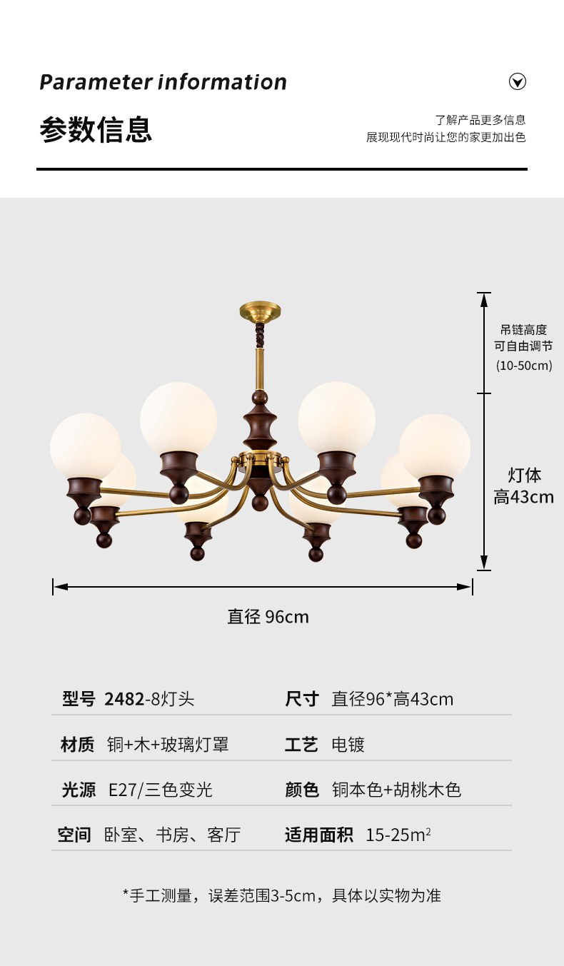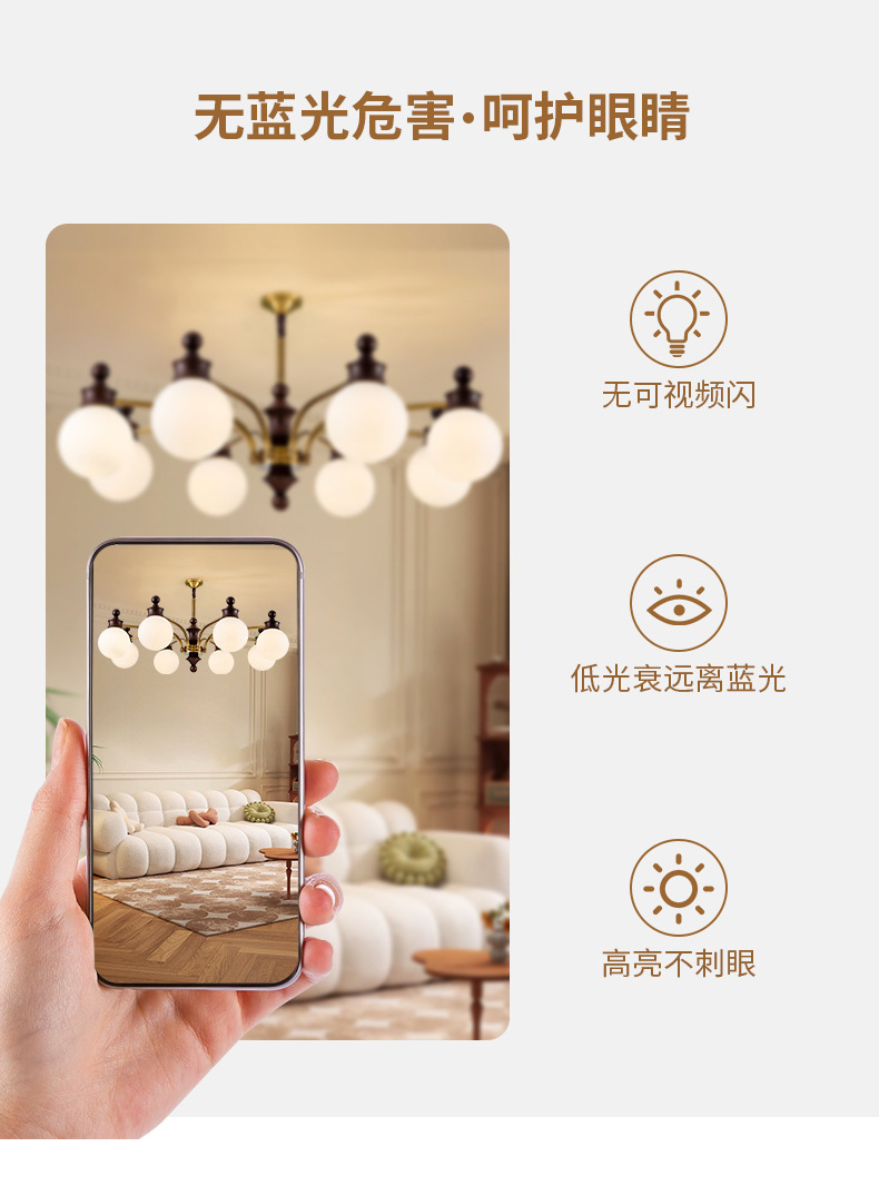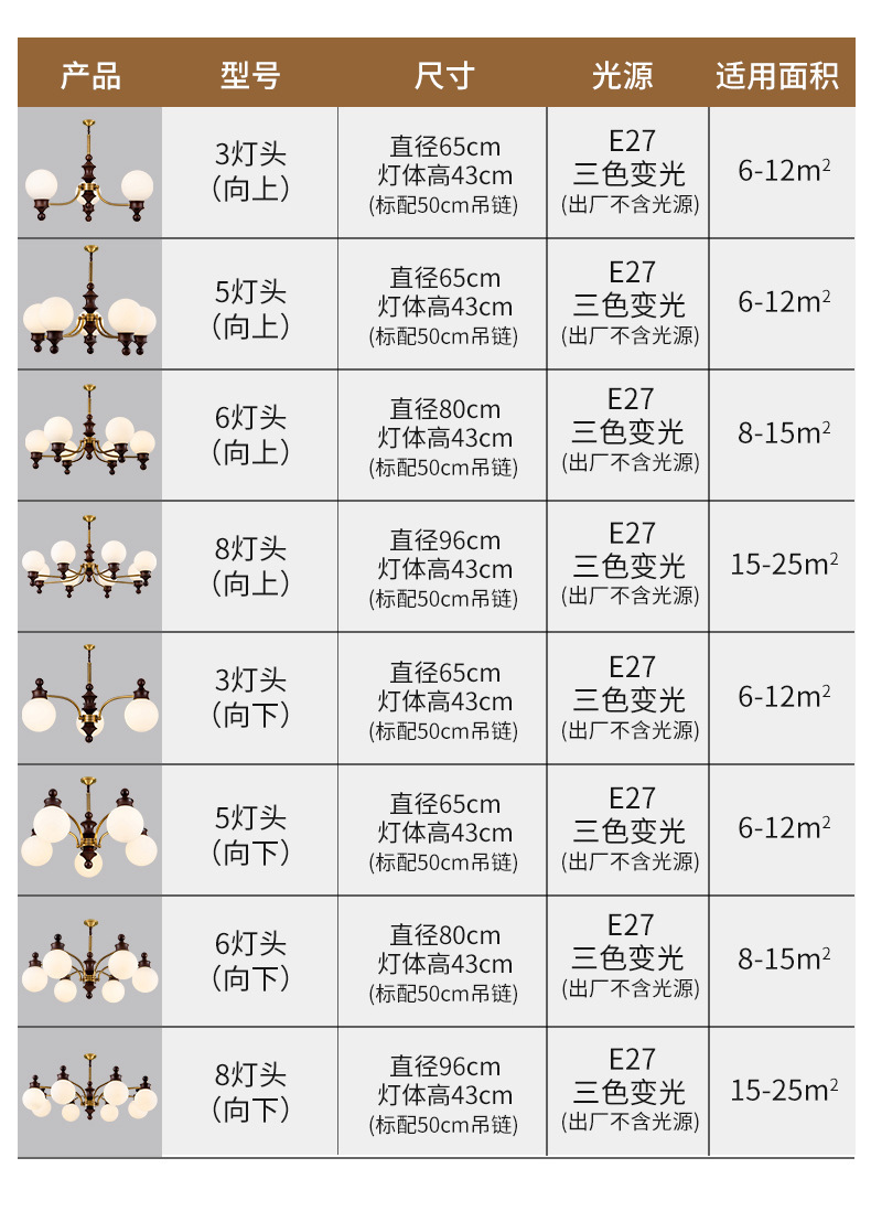 ライトの色 下向きモデル - 3 ヘッド ウォールナット色 - 直径 65CM,下向きモデル-5頭-ウォールナット色-直径65CM,下向きモデル-6頭-ウォールナット色-直径80CM,下向きモデル-8頭-ウォールナット色-直径96CM,上向きモデル - 3 ヘッド - ウォールナット色 - 直径 65CM,上向きモデル-5頭-ウォールナット色-直径65CM,上向きモデル-6頭-ウォールナット色-直径80CM,上向きモデル-8頭-ウォールナット色-直径96CM