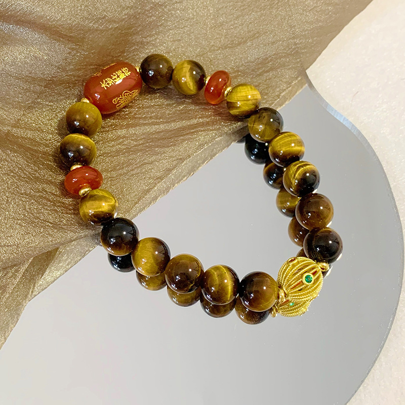 財神招財旺運手串男女金天然虎眼石旺事業輸送ブレスレット卸売り代理起爆金