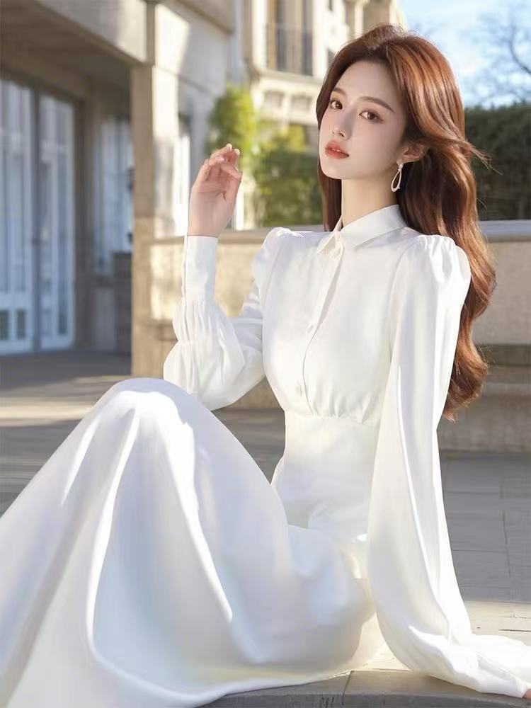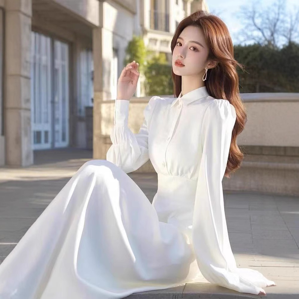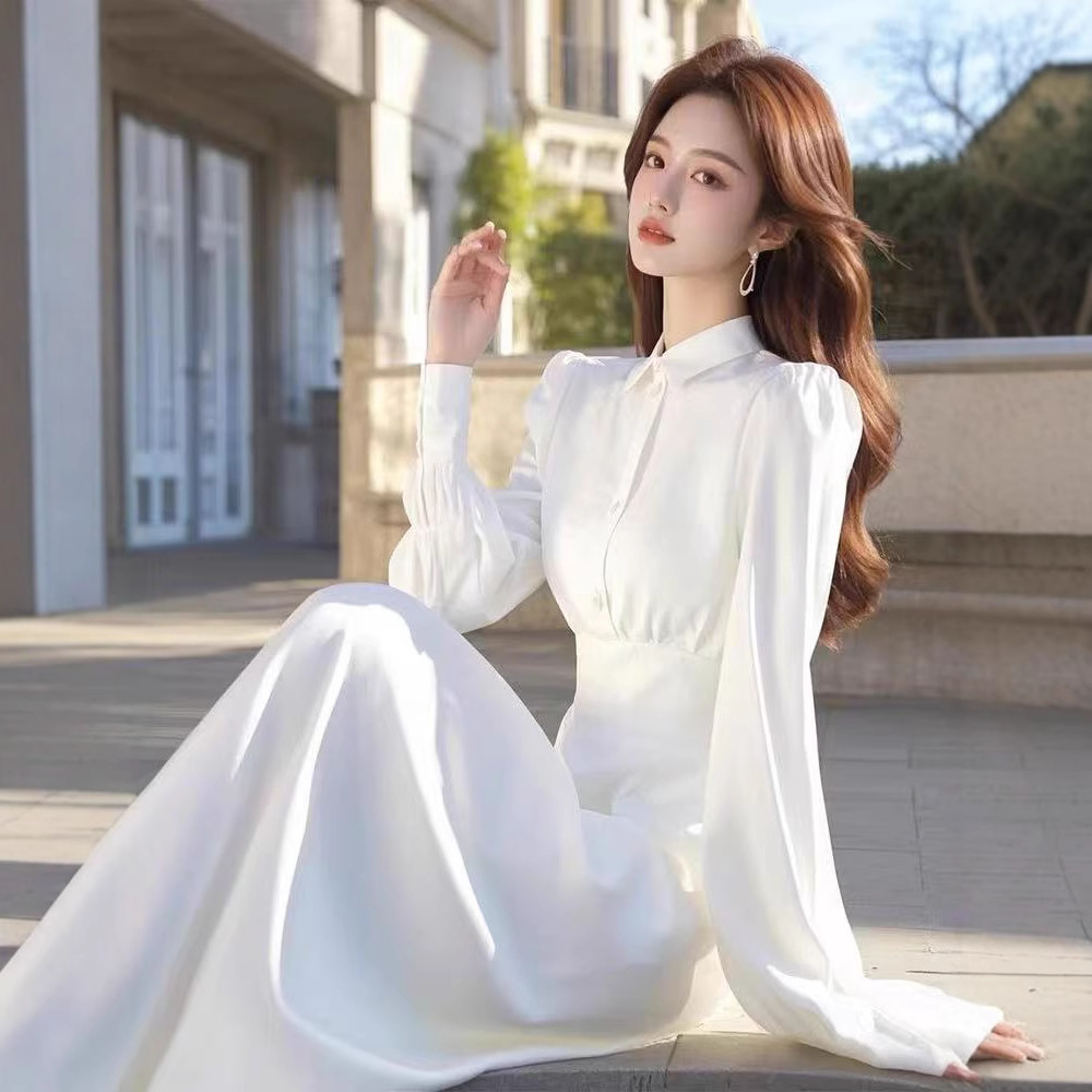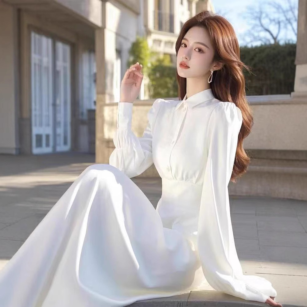 新中国式の白いワンピース女性2025新型春富家千金高級感が美しい独特なロングスカート