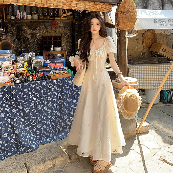お姫様のスカートを脱いでいます。フランス式の甘い夏の半袖ワンピースです。