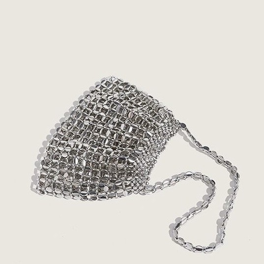 クロスボーダー専用の新型メッキバッグ銀色編みカバン人気レディースロングショルダービーズ編みカバン