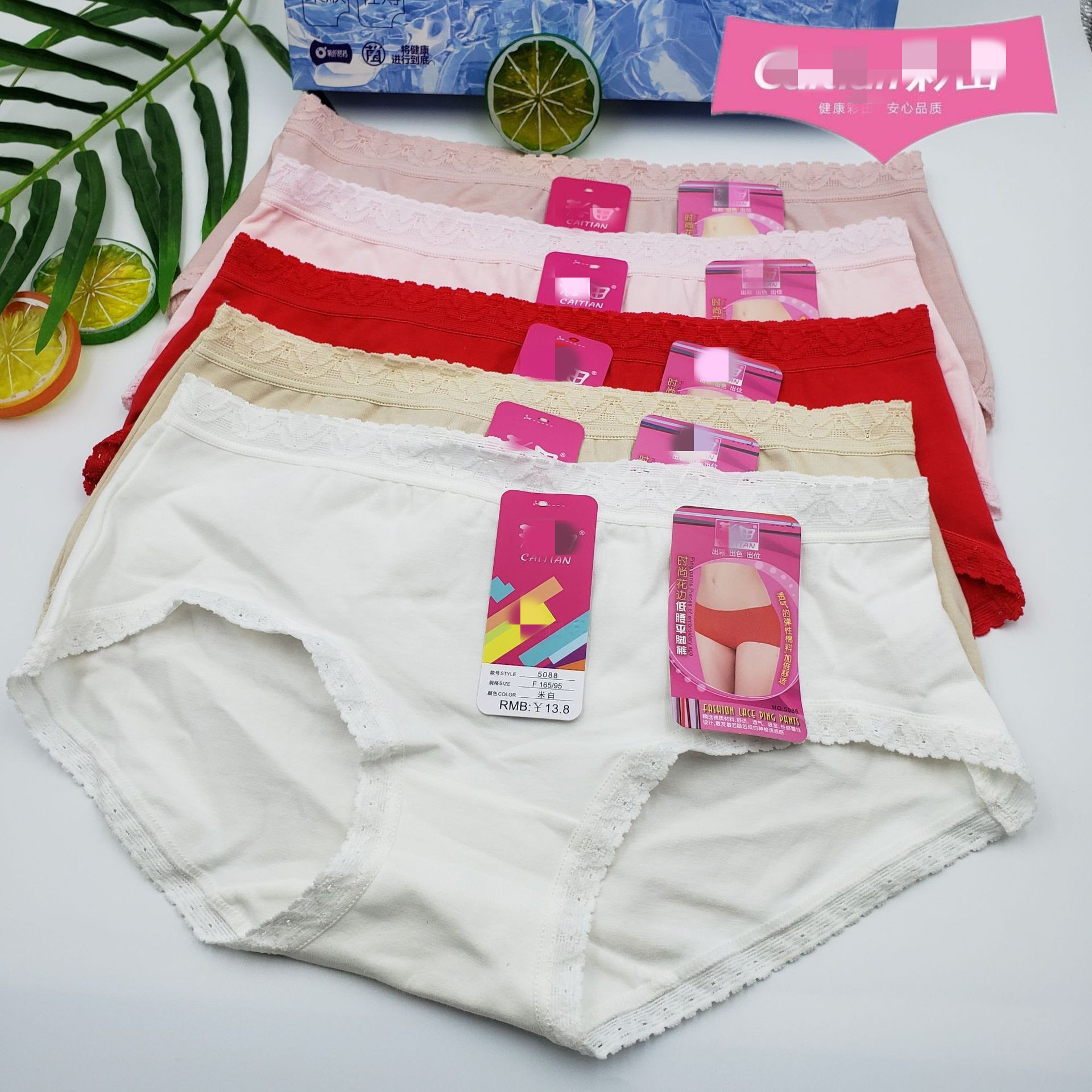 彩田36172型通気性抗菌下着 女性用ミッドウエスト無地快適日本風女性用三角パンツ 通気性と快適性