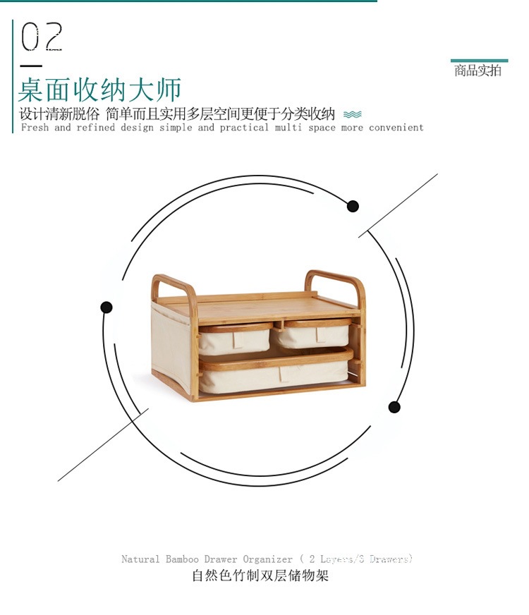 デスクトップ収納ボックス引き出し式多層化粧品整理ボックス創意設計オフィス竹アクセサリーボックス日本式