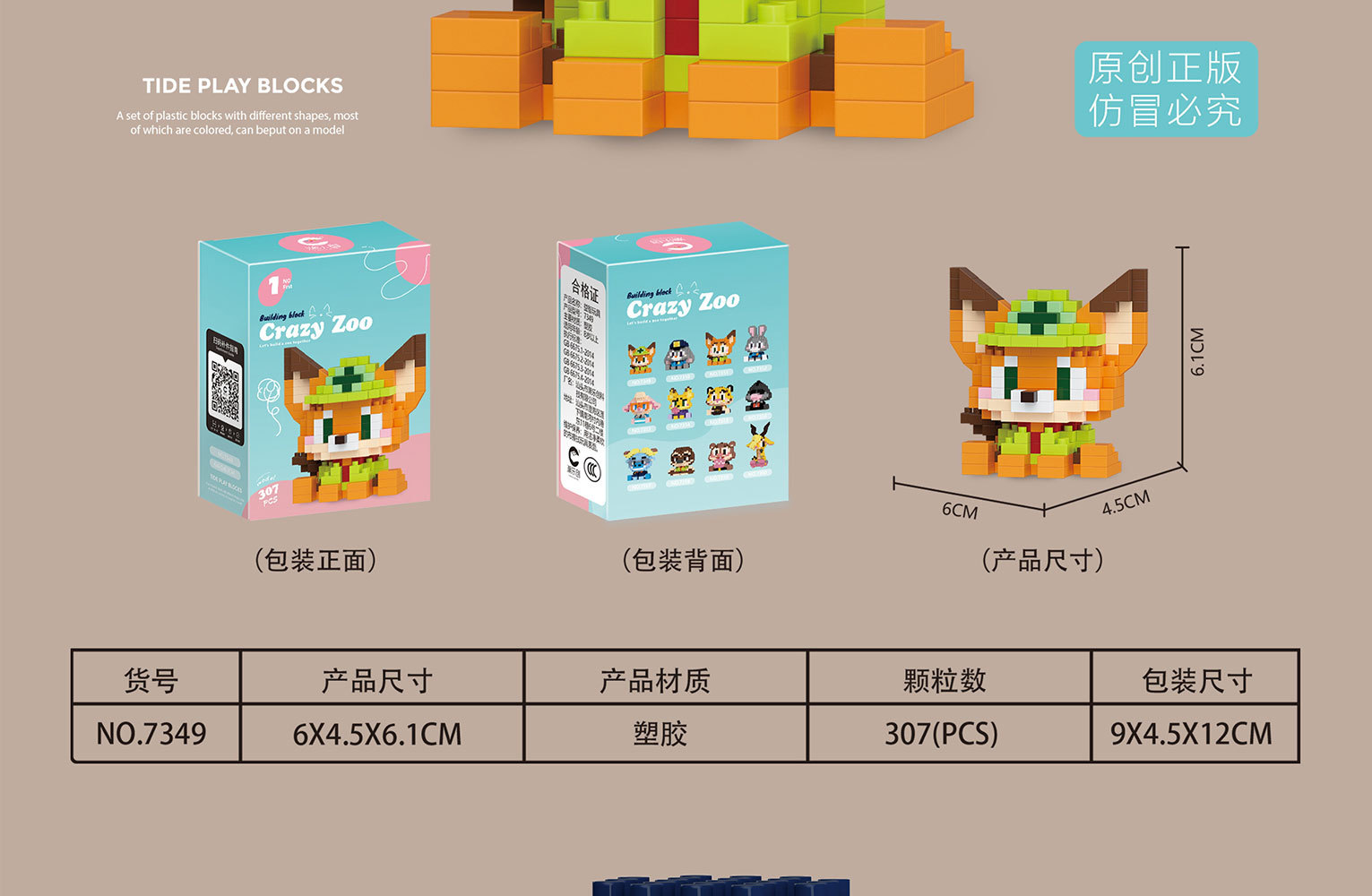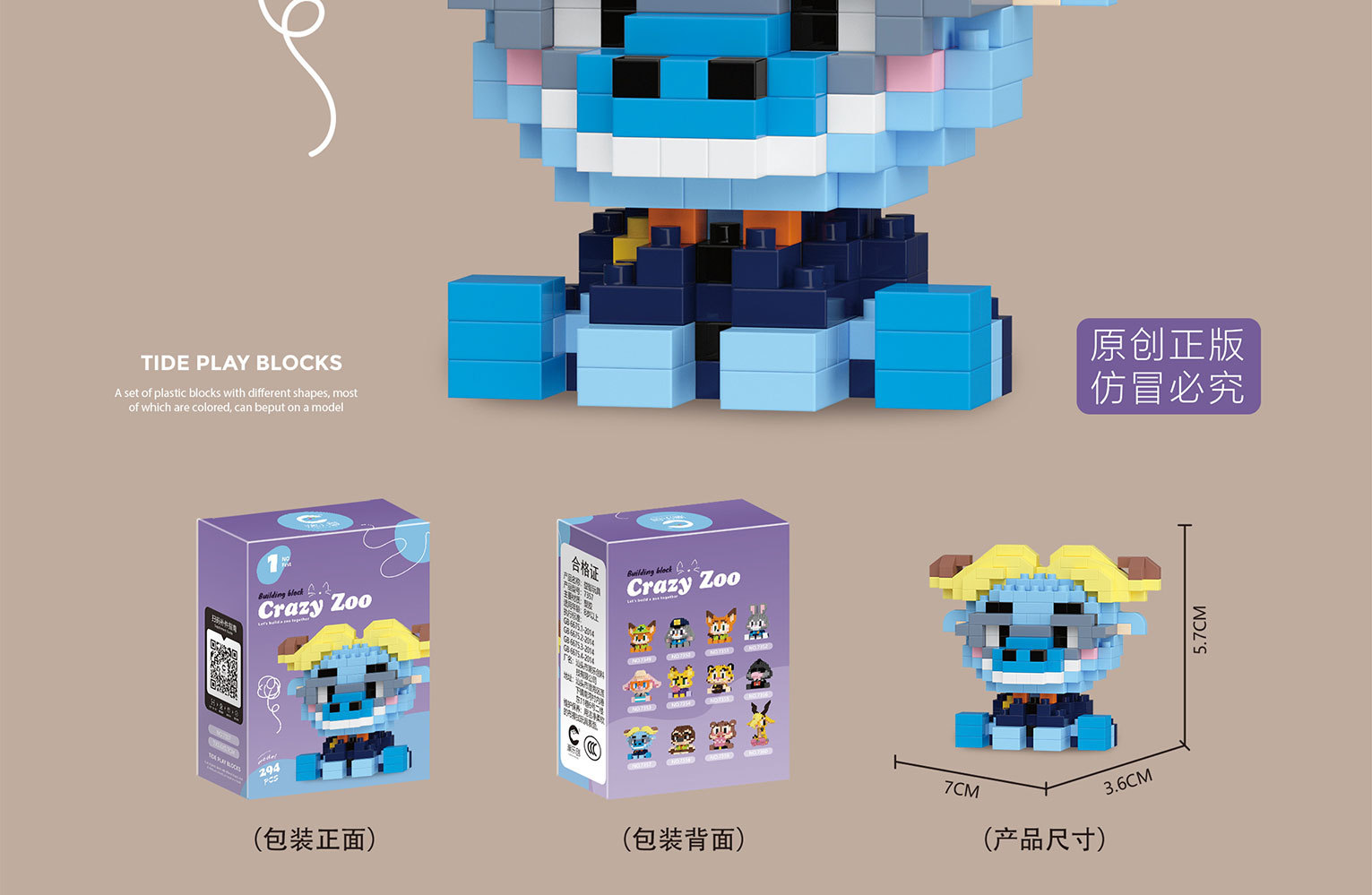 潮楽創微粒子漫画楽園公仔積み木子供益智デスクトップ装飾動物模型玩具