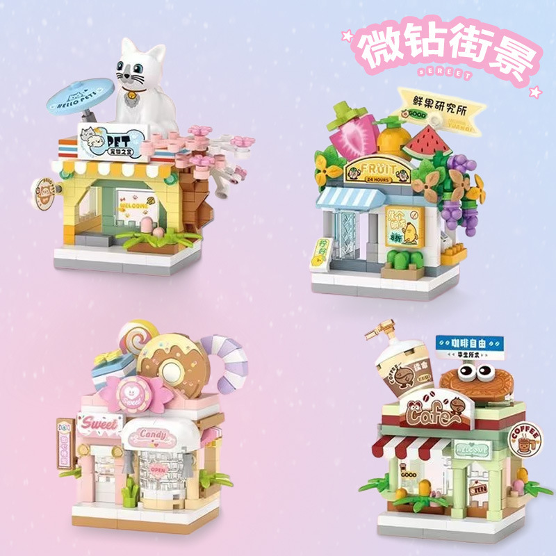 Loz積み木街景8604シリーズの子供たちはミニ粒子スイーツ店の建築模型の小さな家を国境を越えた