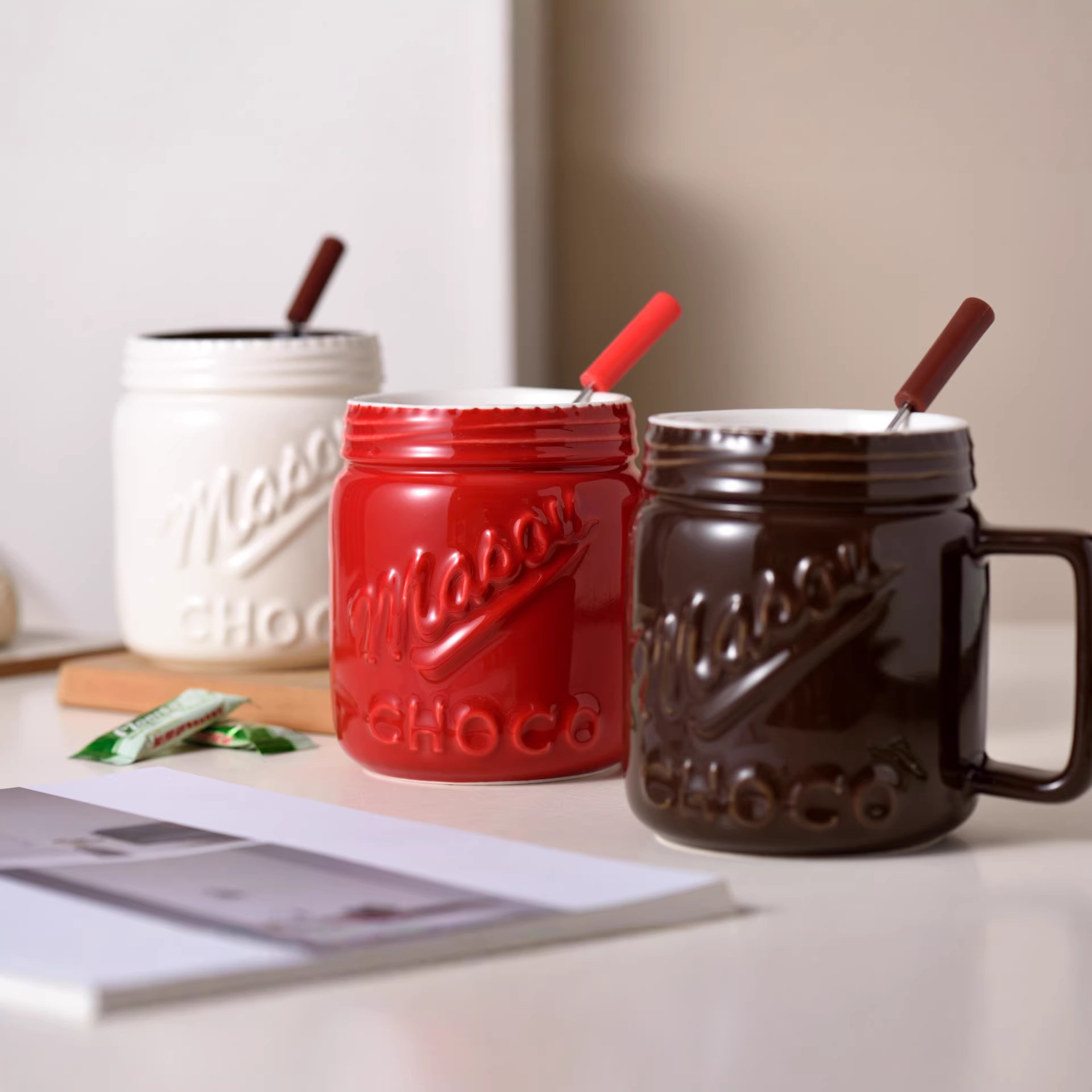 セラミック鍋マグカップチョコレートカップスイスアイスクリーム鍋カップチーズチーズ鍋カップフォーク付き