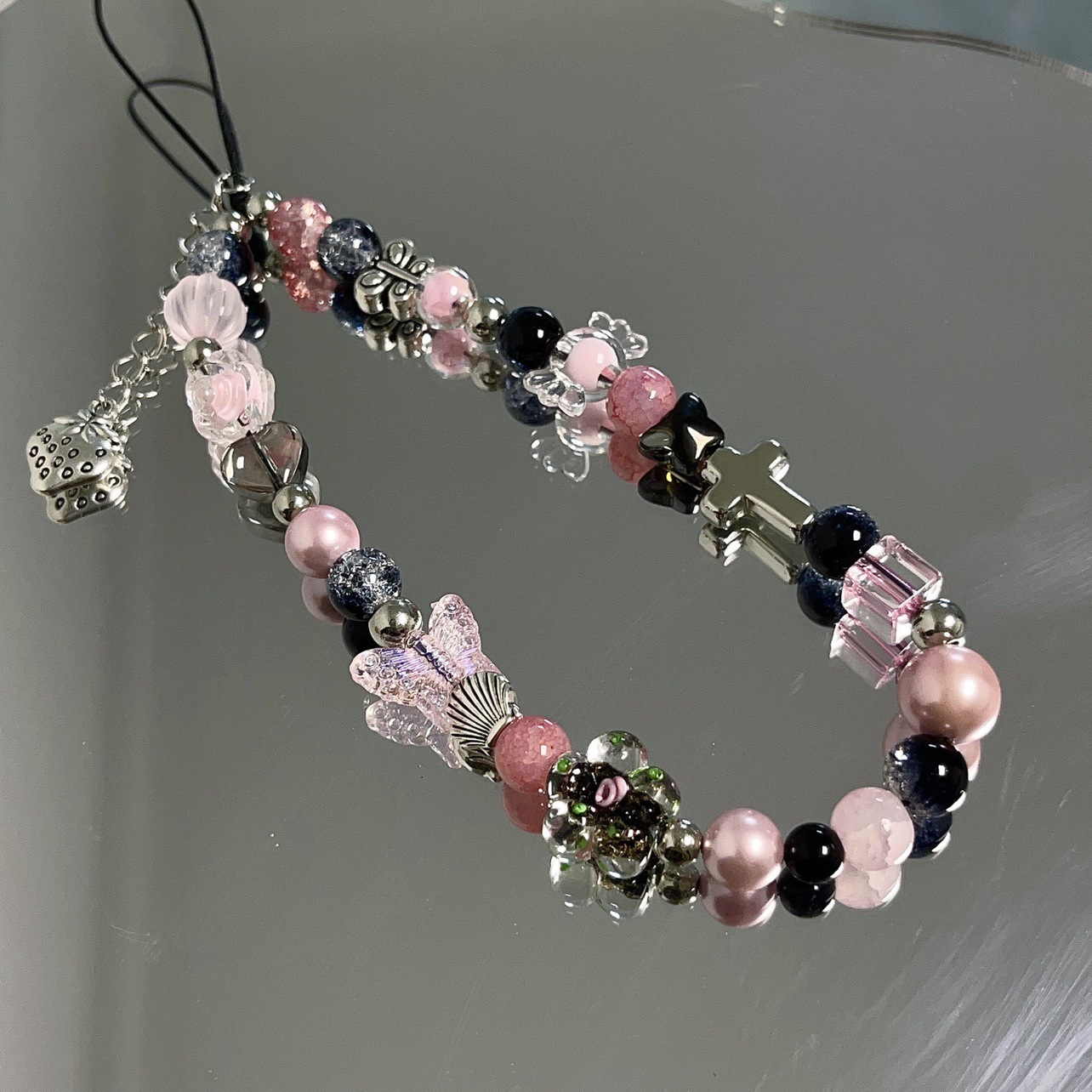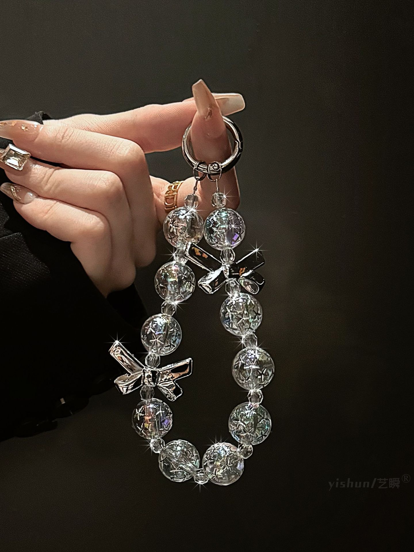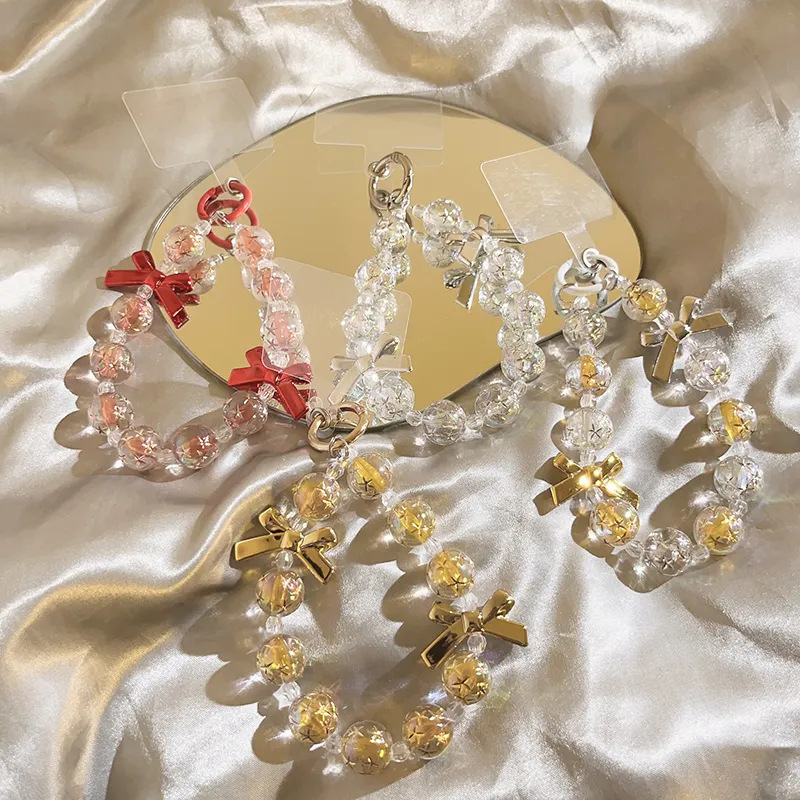蝶結びの微透の美しい数珠の携帯チェーンの短いタイプの紐を掛けてチェーンのハイエンドの紛失防止のペンダントの個性を掛けます。