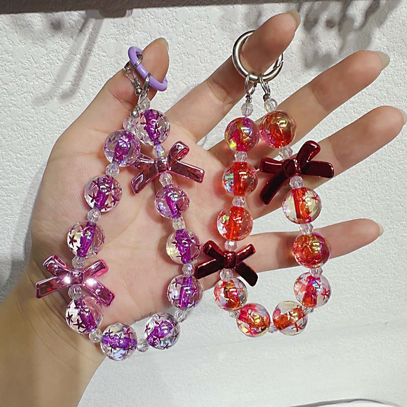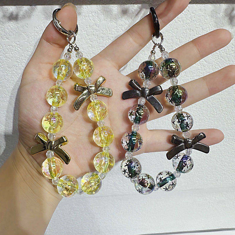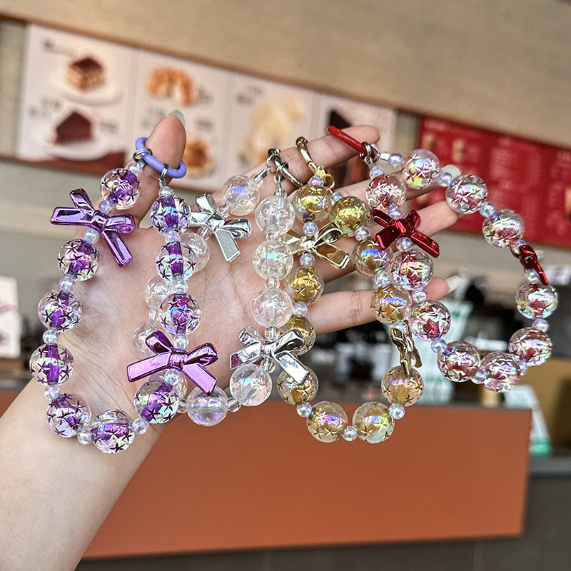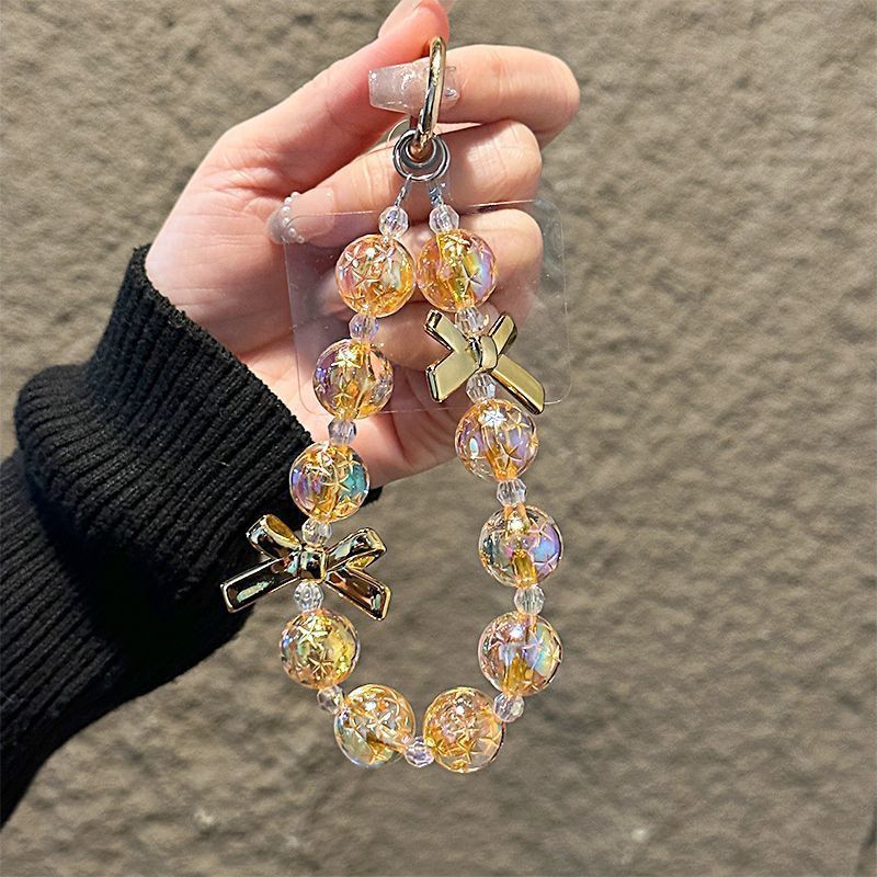 星空の数珠の携帯チェーンのキーホルダーの蝶結びの携帯ケースのペンダントの少女のカバンの手提げチェーンの卸売り