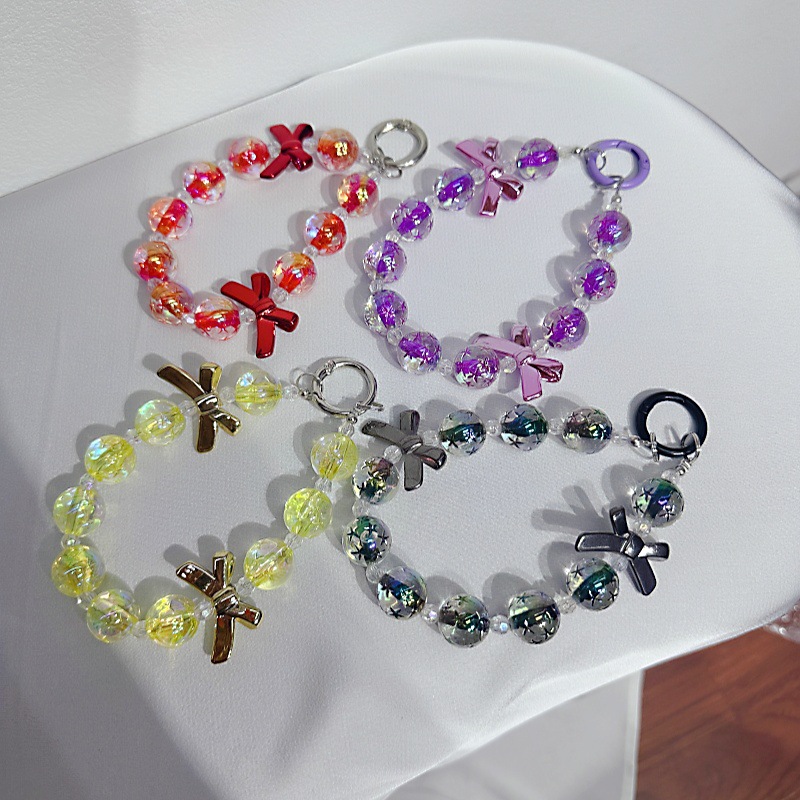電気めっきの蝶結びの氷の結晶のカラーメッキのビーズの手提げのチェーンの新型はすべての携帯電話の携帯電話の携帯電話の型番のブレスレットを適用します。