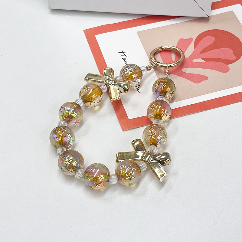新しい塗装電気メッキ弓チェーンビーズキーホルダーペンダントレディースバッグペンダント携帯電話チェーンアクセサリー