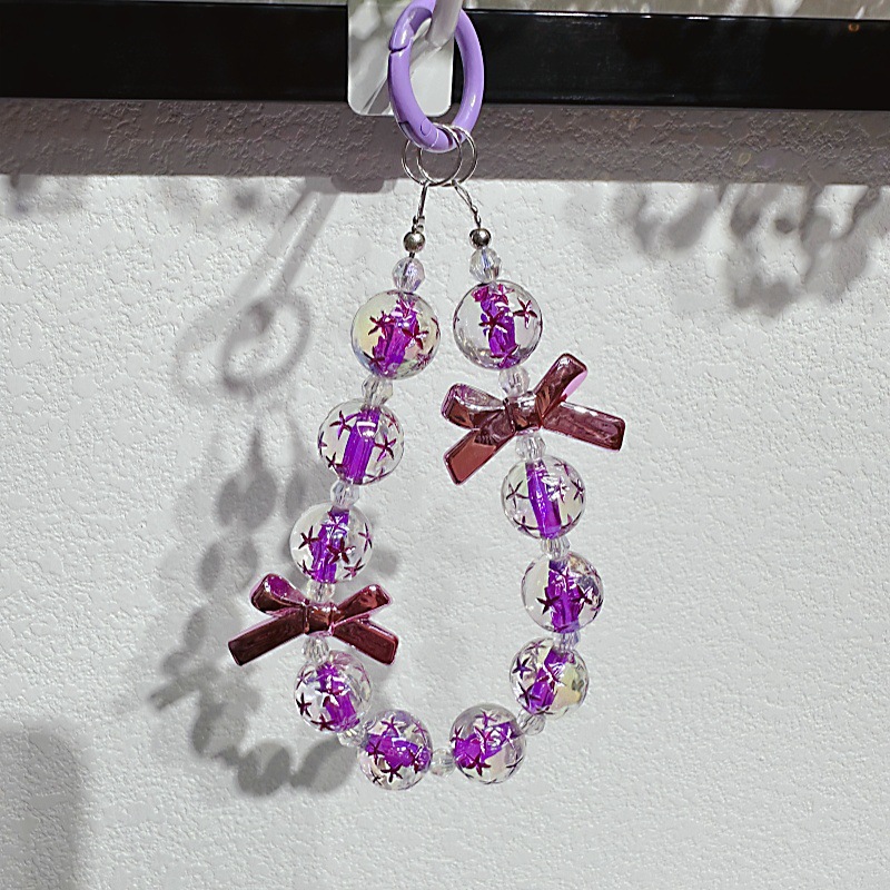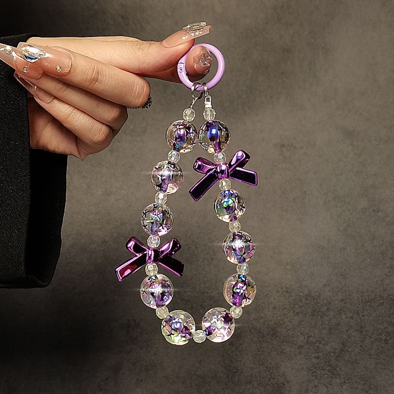 個性的な創意の蝶結びの紫色の数珠の手提げチェーンの手首の短い掛け縄の帯のクリップの携帯電話の携帯電話のキーホルダーのペンダント
