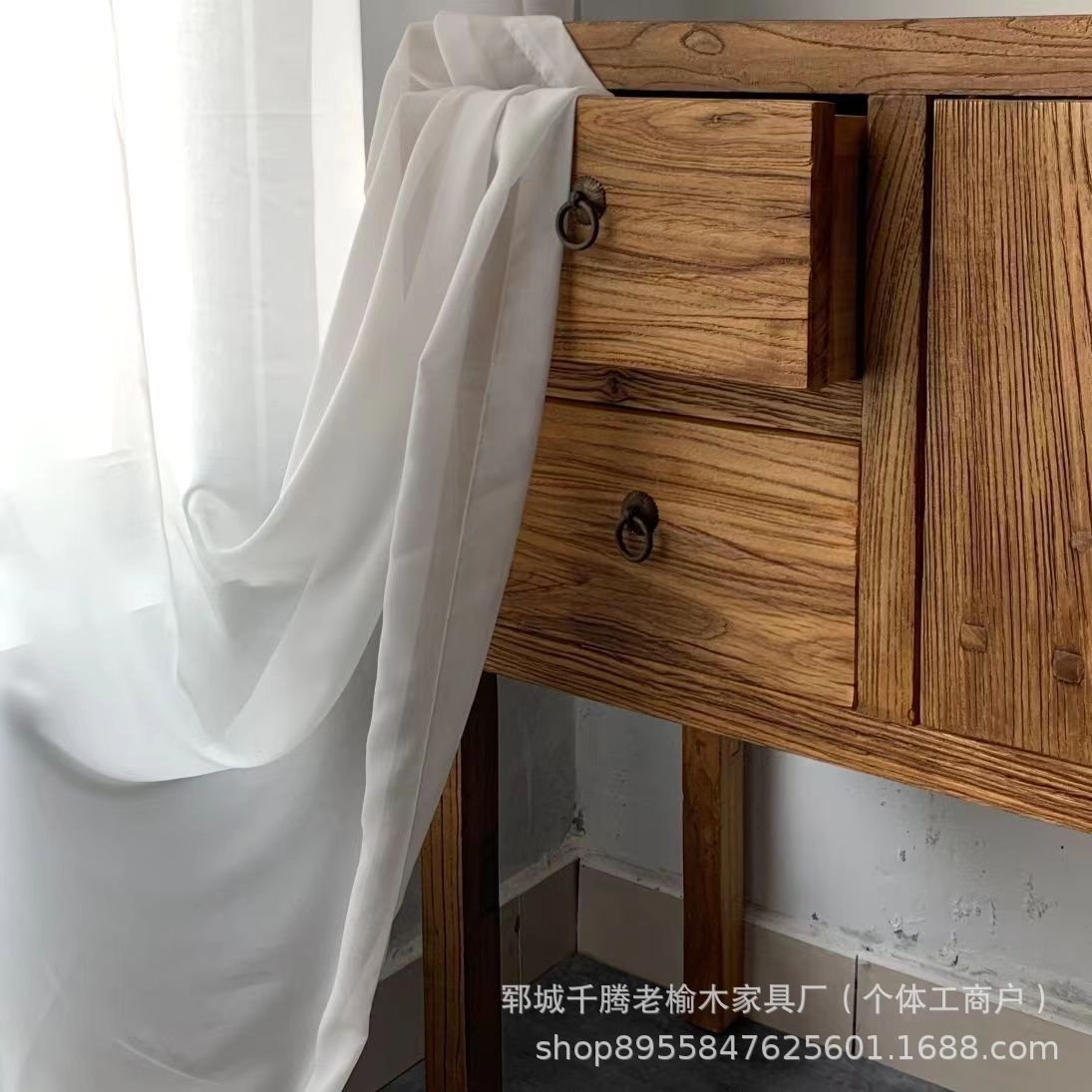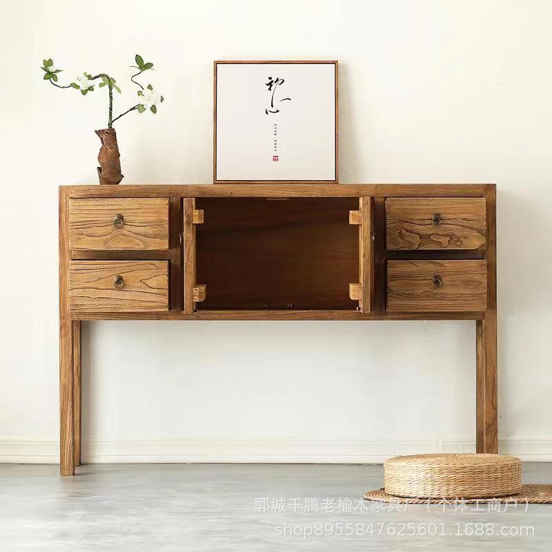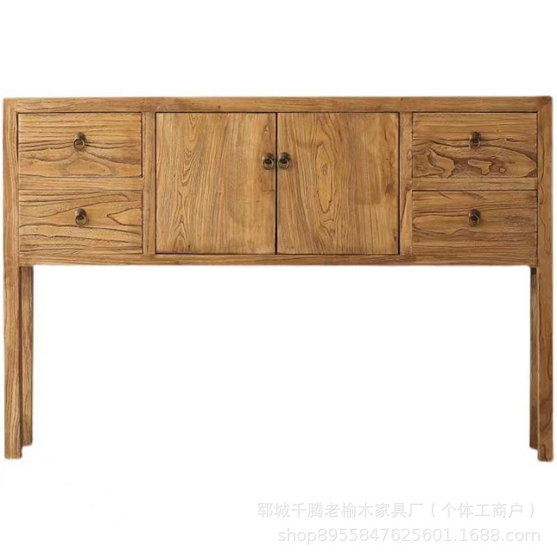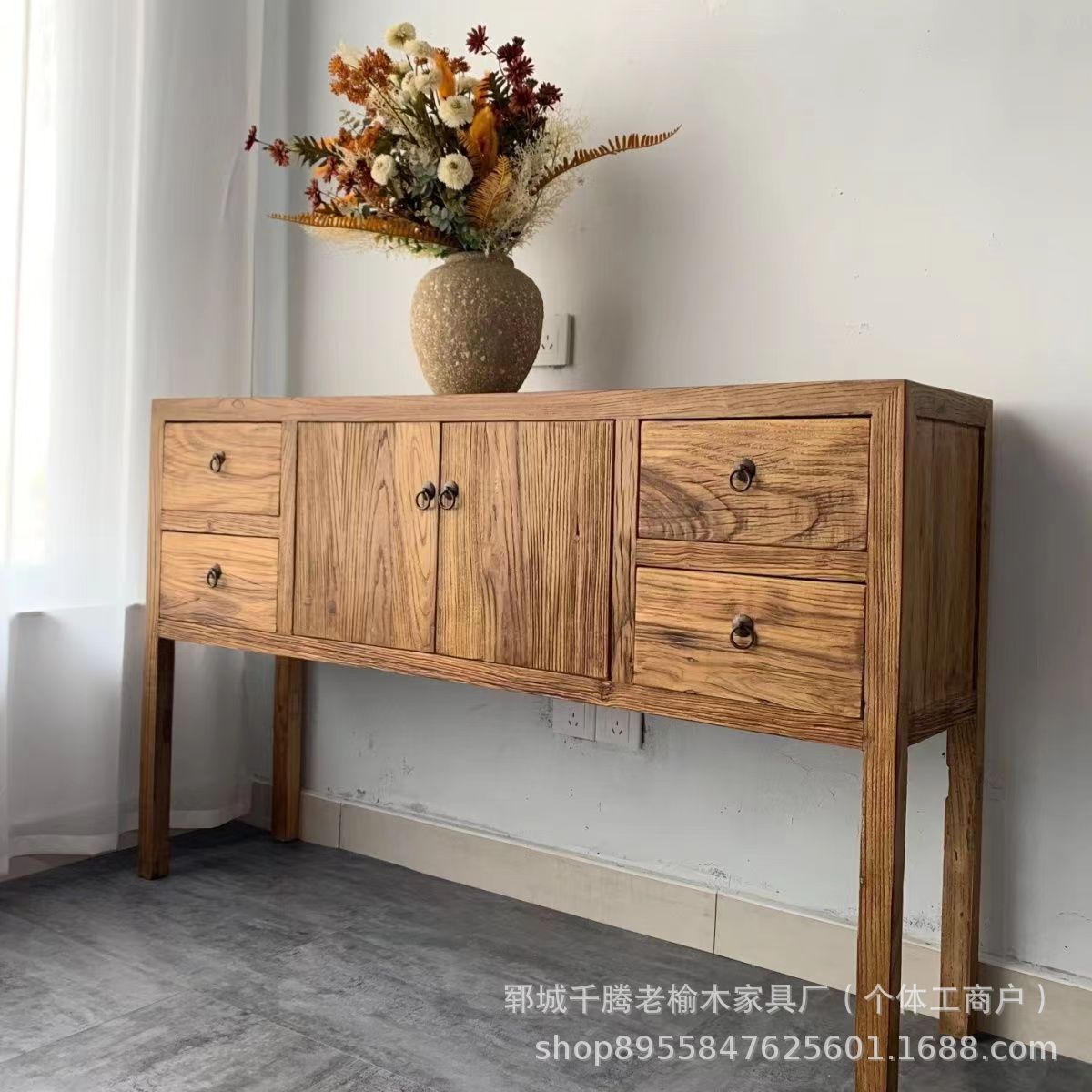 レトロな木のサイドキャビネット家庭用玄関壁に寄りかかって高い足の収納棚レトロな古い楡の収納棚