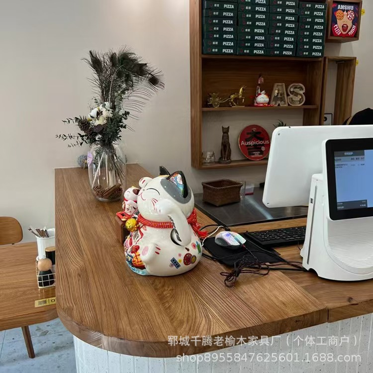 古いニレ材プレートフロントデスクトレイホテル装飾デスクトップニレ材テーブルボード無垢材レトロバーテーブルボード