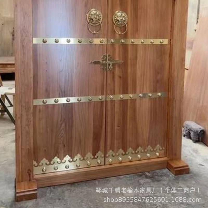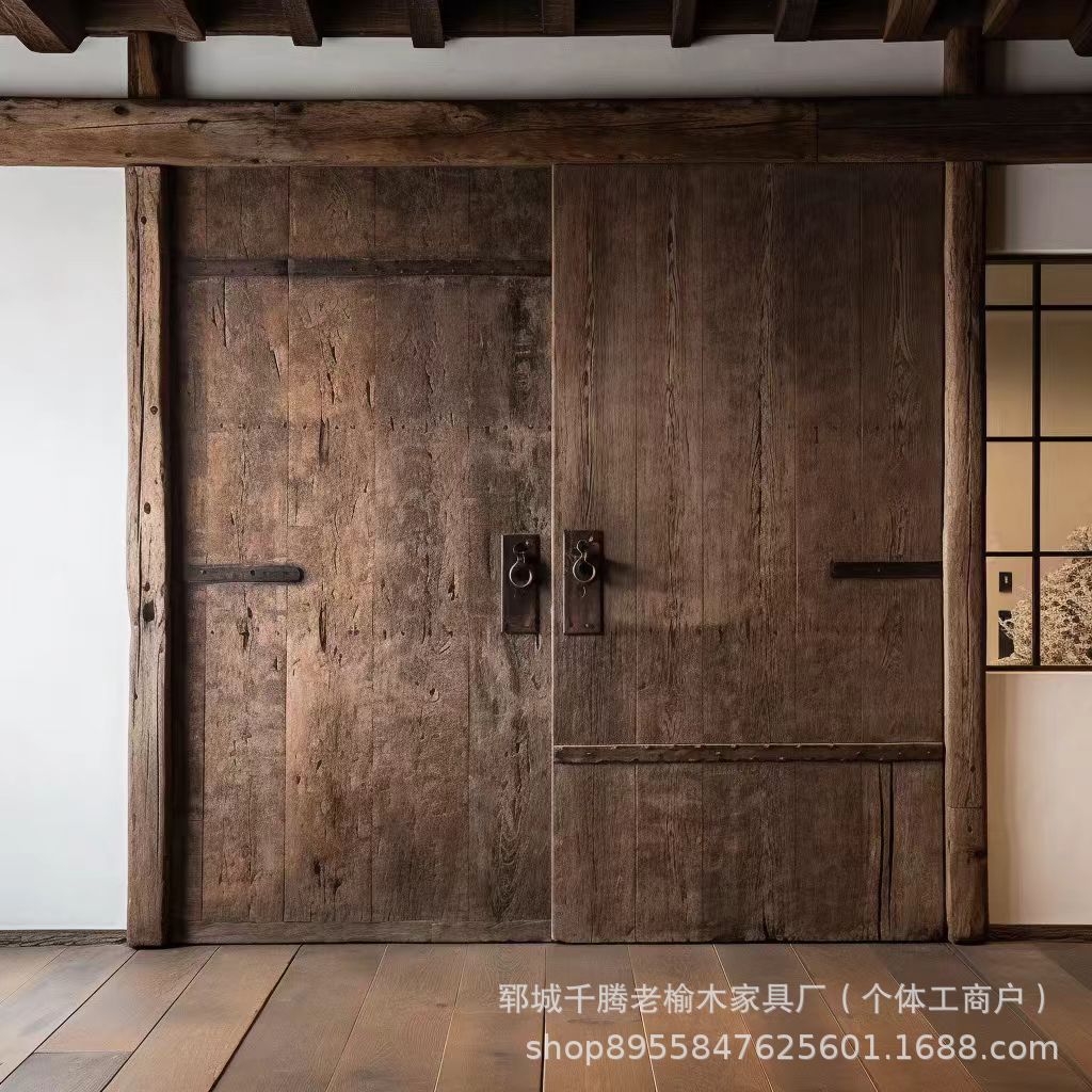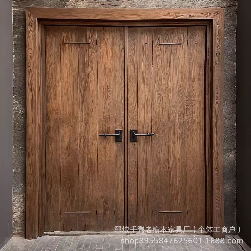老楡木大門中国式入戸門双開門風化老楡木大門入戸別荘大門