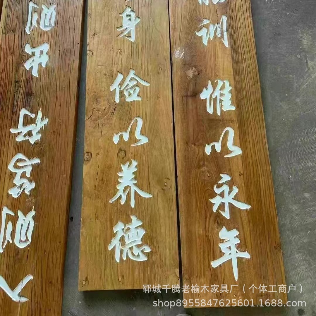 木製銘板、古いニレ材の店頭看板、書道木彫り板、B&Bホテル案内板