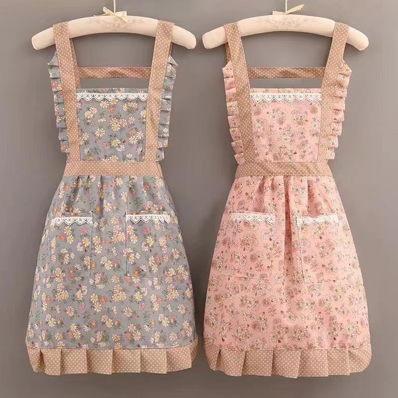 キャンバスダブルポケット通気性プリンセススカート女性家庭用キッチン料理ウエスト防汚耐摩耗エプロン作業服