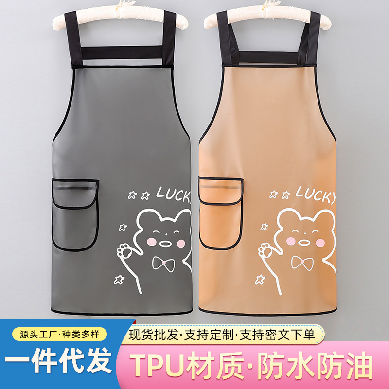 新款tpu围裙家用厨房夏薄款可爱卡通围裙防防油水耐脏背带围裙