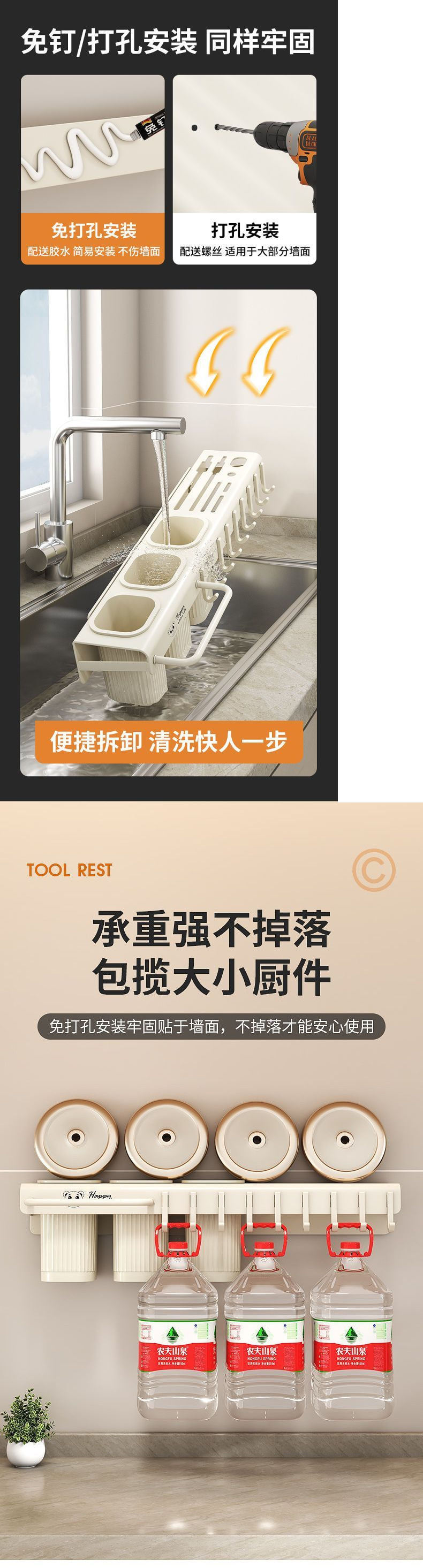 ステンレスキッチン刃物棚多機能穴なし刃物棚収納棚箸籠箸筒壁掛け式