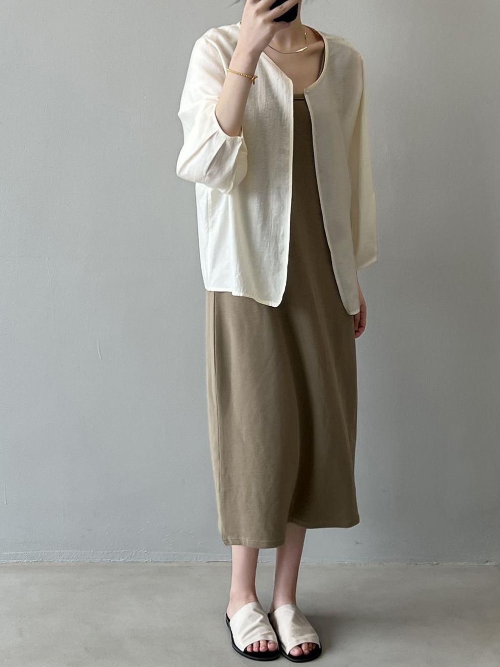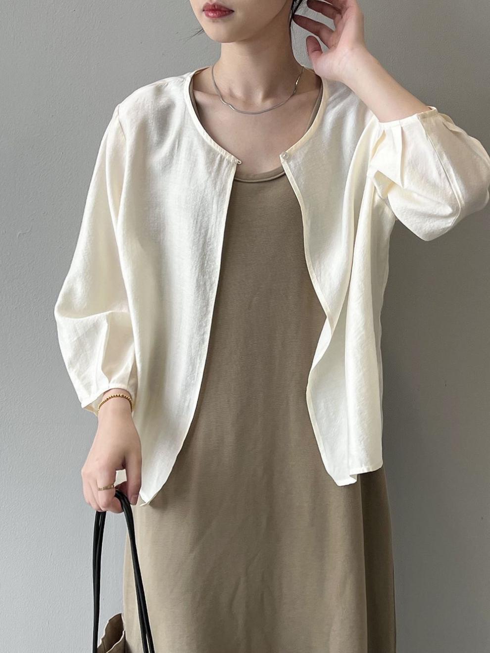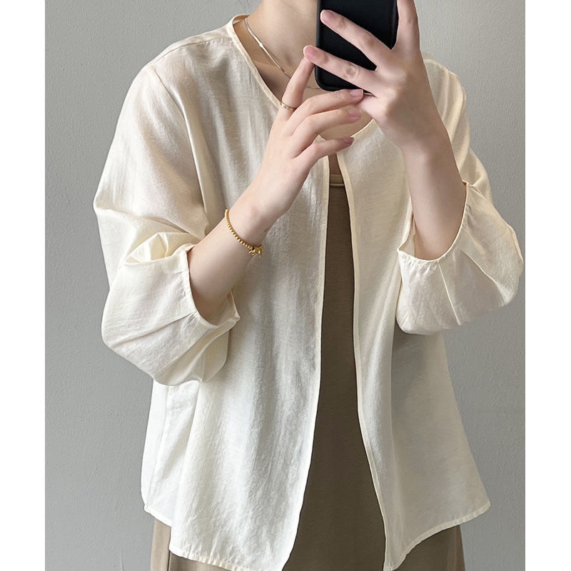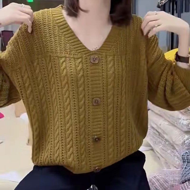ニットカーディガン女性2023年春夏ゆるいカジュアルランタン袖純色上襟長袖セーター女性コート
