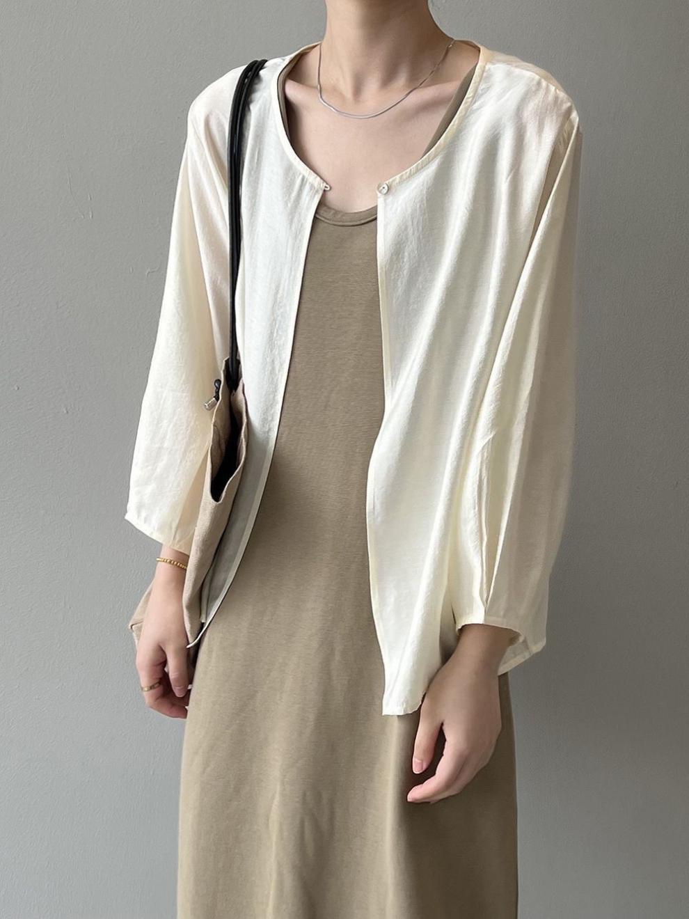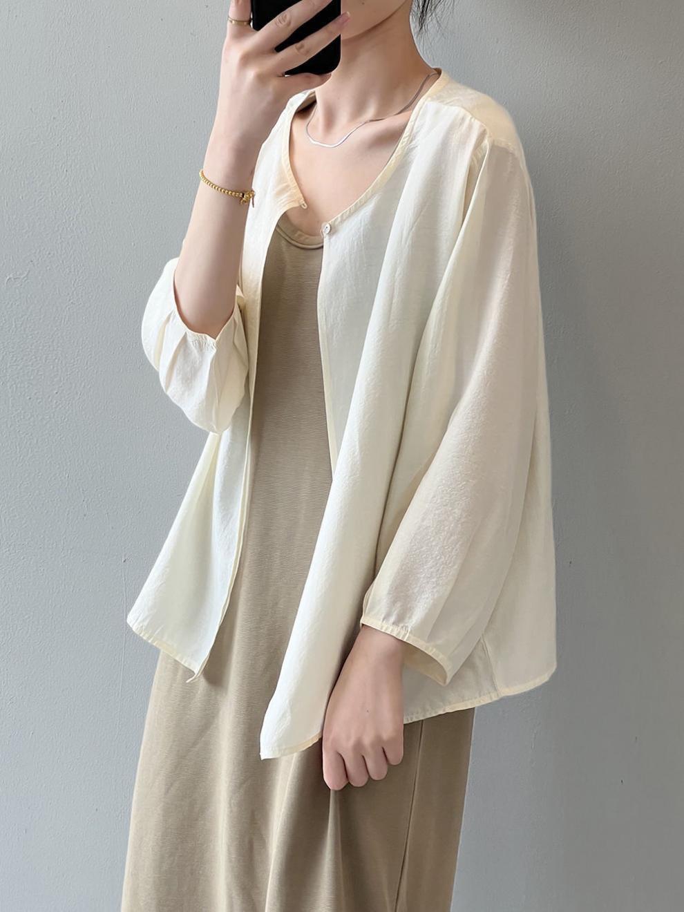 新しい夏のアイスニットの女性のカーディガンの外に2023のゆったりしたストールのコートの薄いタイプのエアコンの服の日焼け止めの服を掛けます。