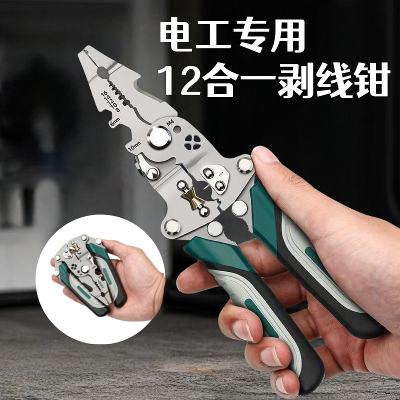折りたたみ式電気技師多機能ワイヤーストリッパー 12-in-1 シェービング圧着ワイヤーラッピングプライヤー家庭用特殊プライヤー