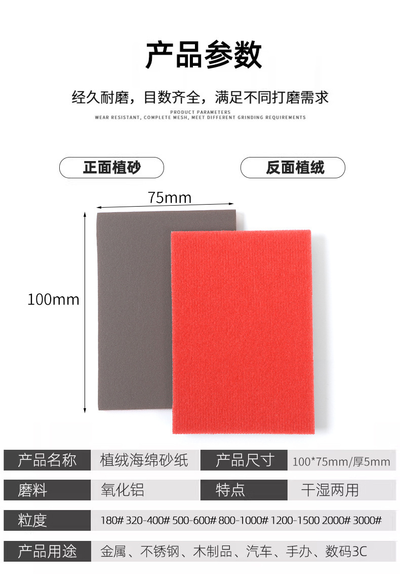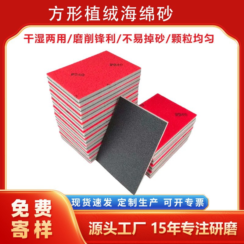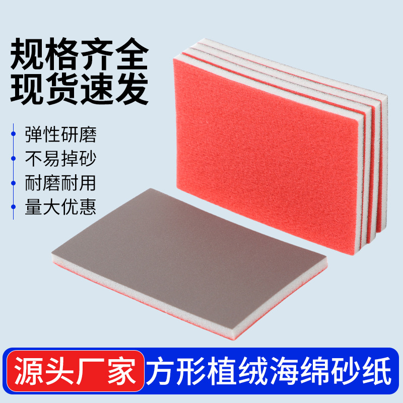 75*100MM植绒海绵砂方块海绵砂金属件塑料打磨抛光砂纸3C打磨砂纸