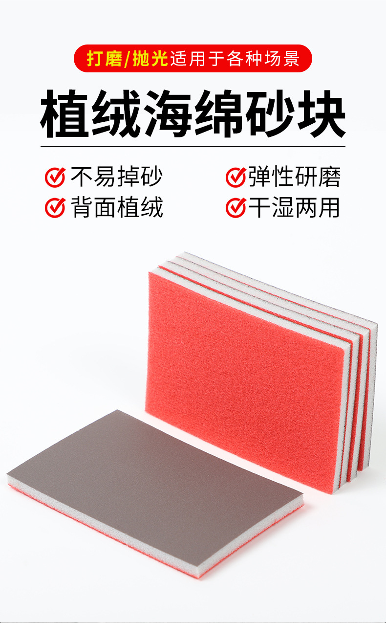 海绵砂纸单面植绒海绵砂75mm*100金属塑料木工漆面打磨抛光小方砂