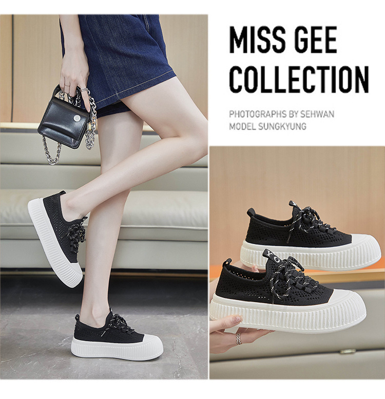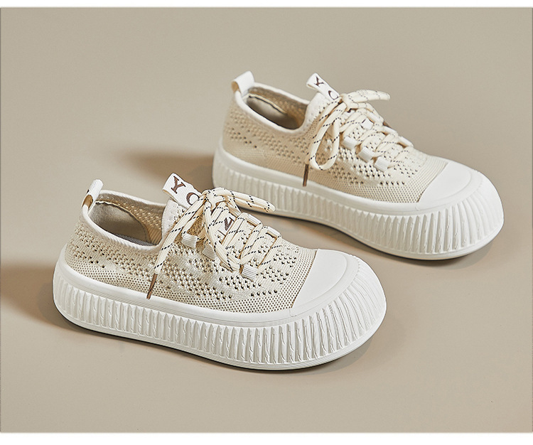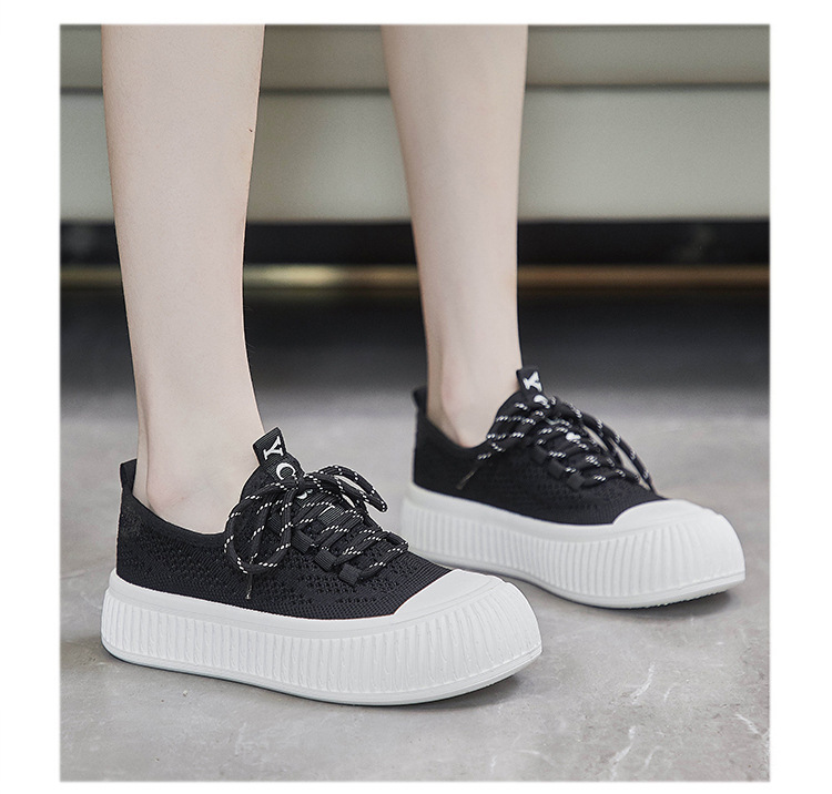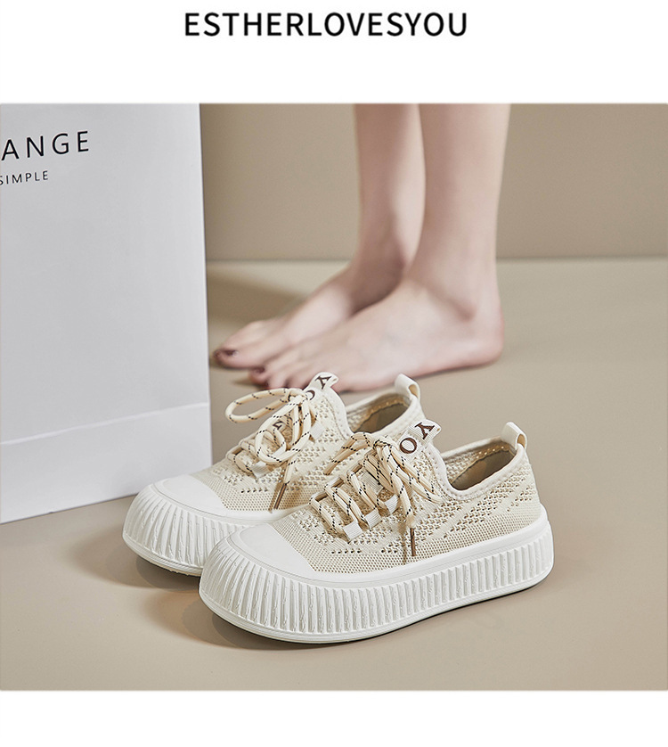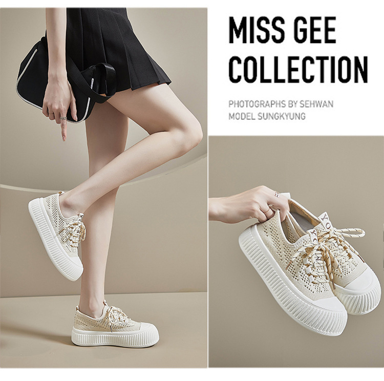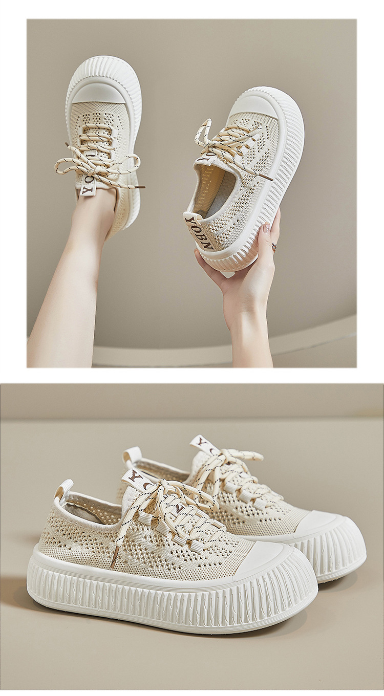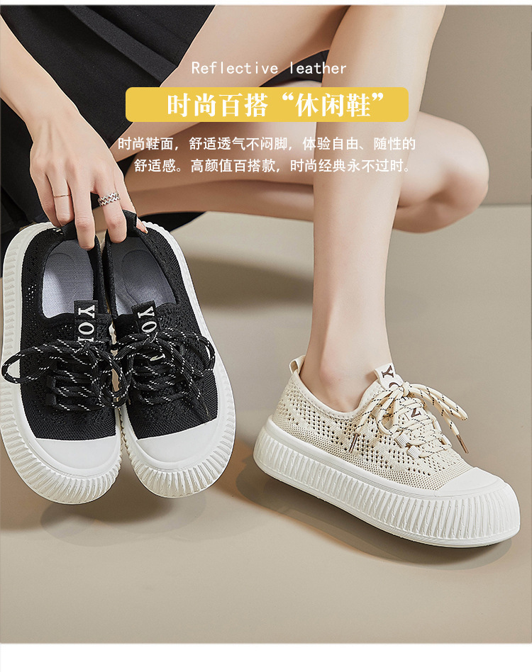 夏の通気性キャンバス靴女性2025新型飛織網面白靴厚い底透かし彫り板靴運動カジュアル靴