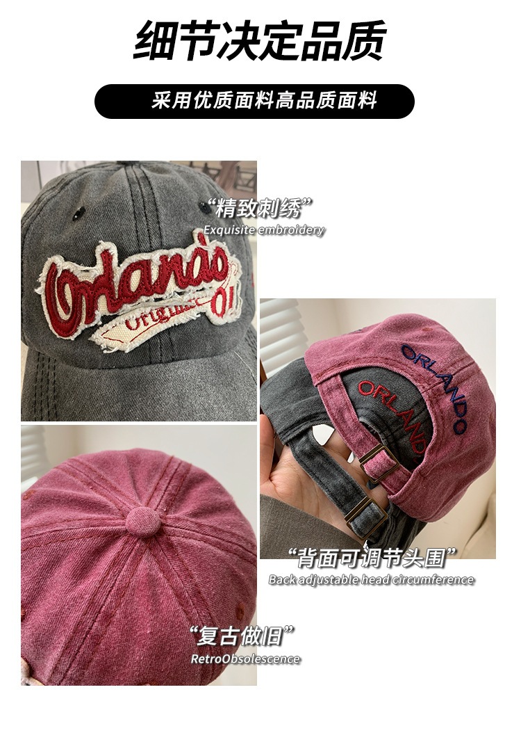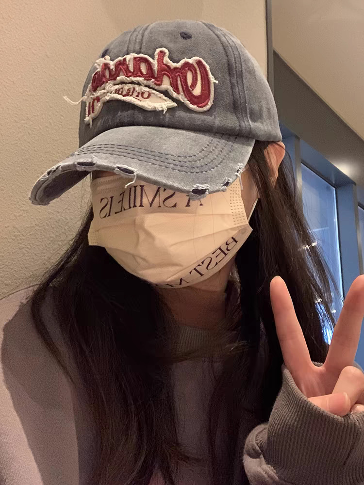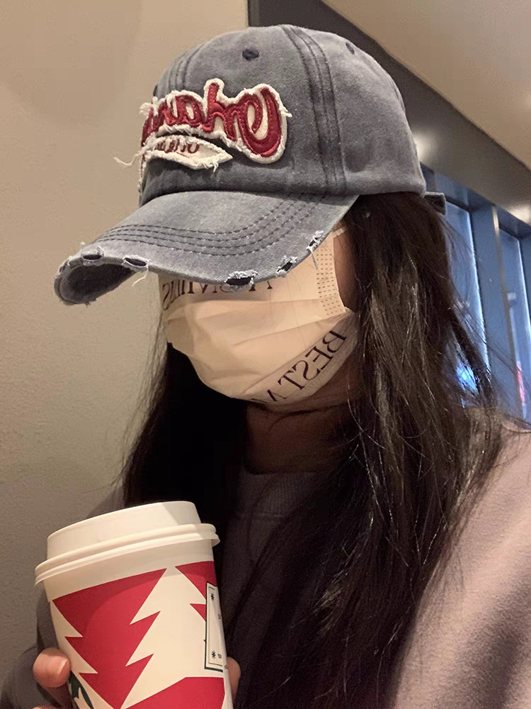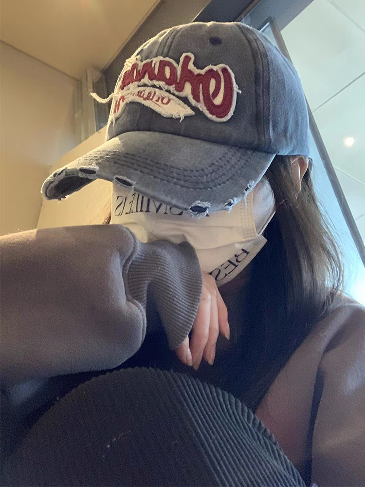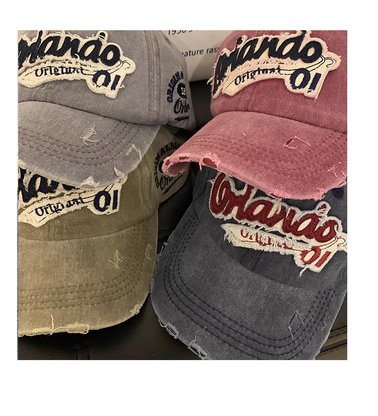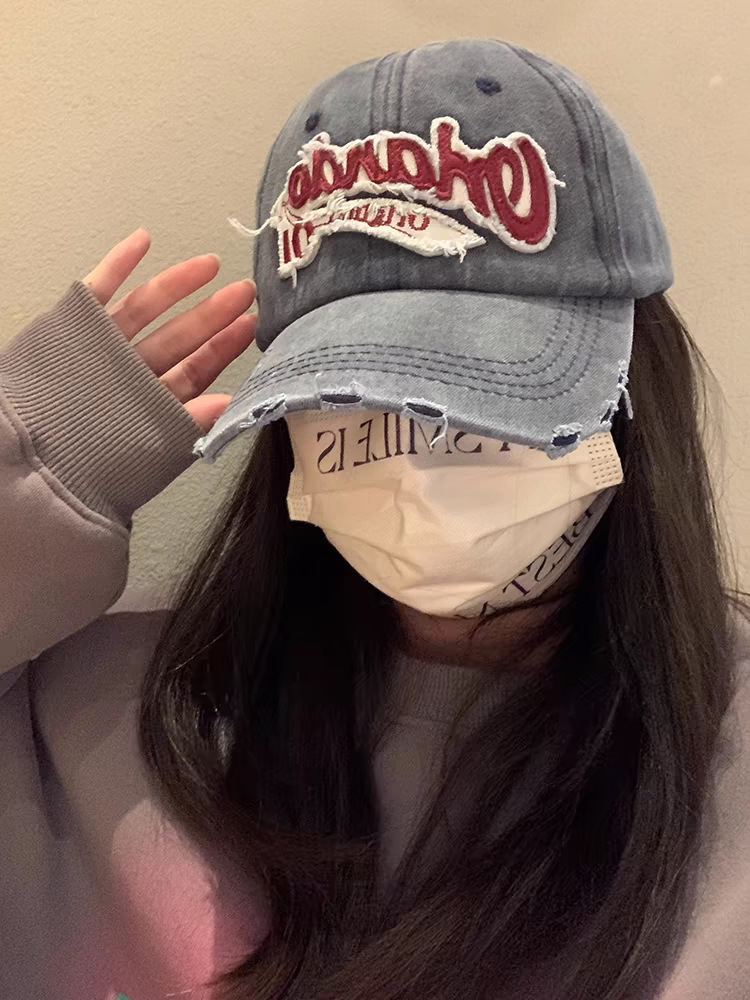破れた穴のアルファベットの刺繍の野球帽の韓国版は深くて幅を広げます。