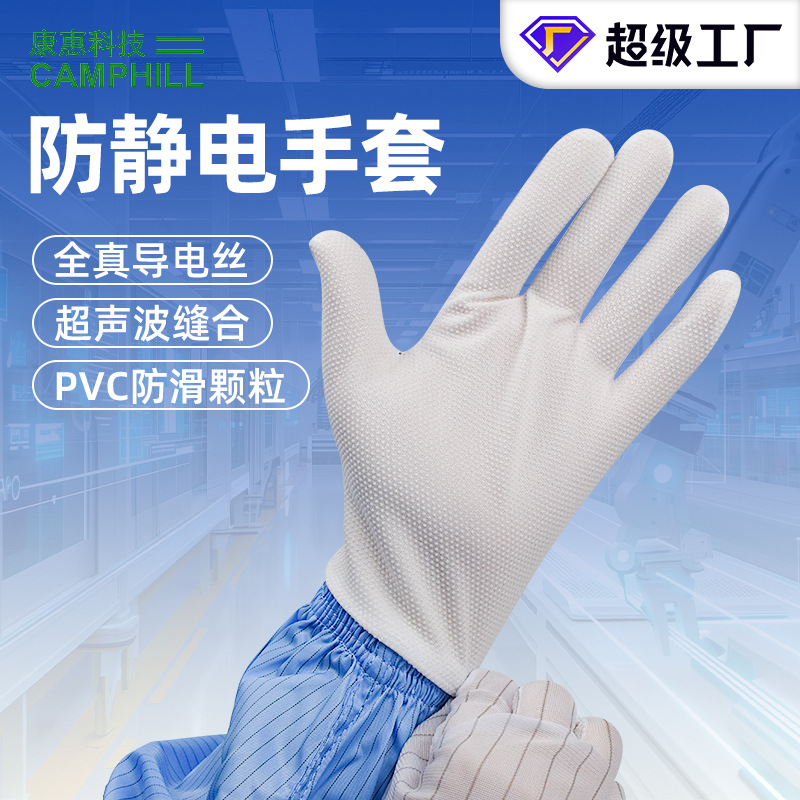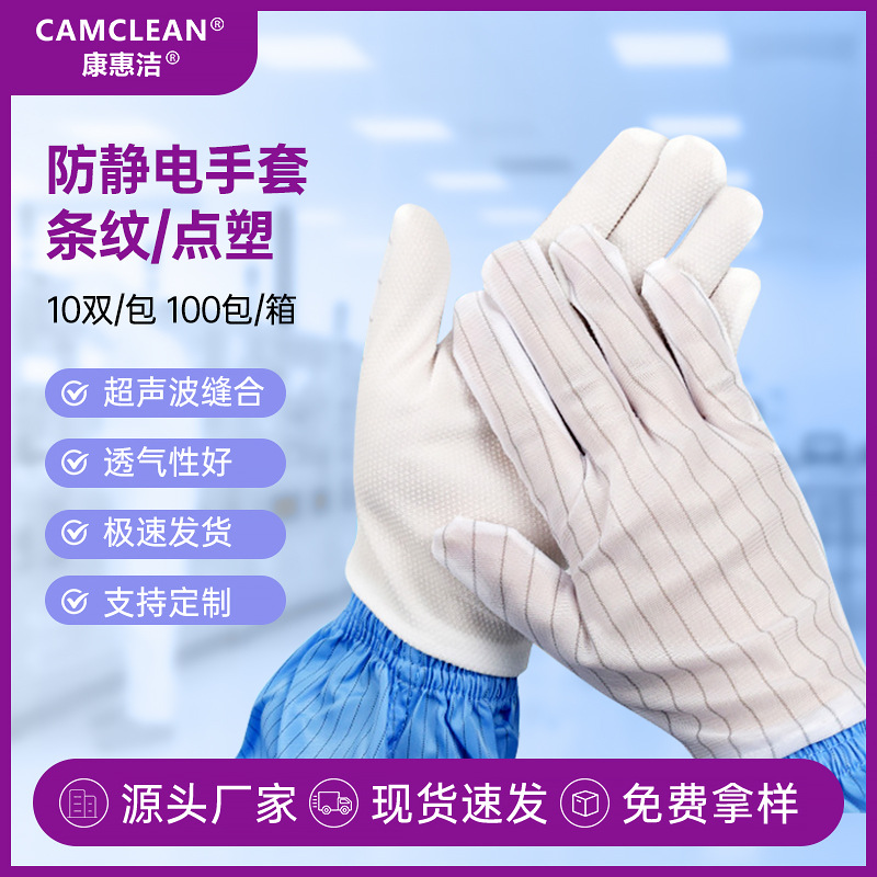 防静电条纹手套洁净室点塑手套耐磨手套电子车间工作手套批发无尘
