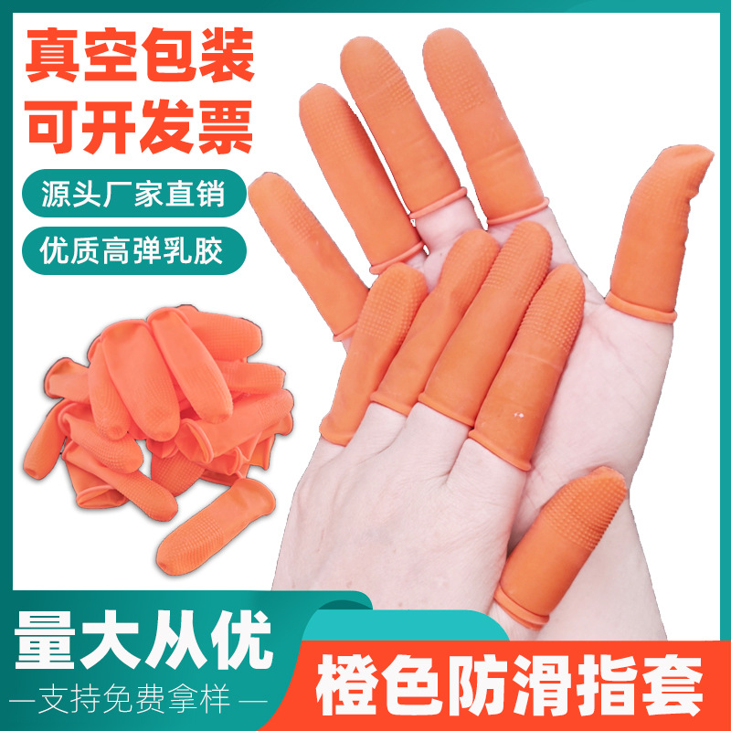 滑り止め指サックオレンジ色の白い粒子麻点ラテックス指サック厚い使い捨て労働保護指サック工場直販