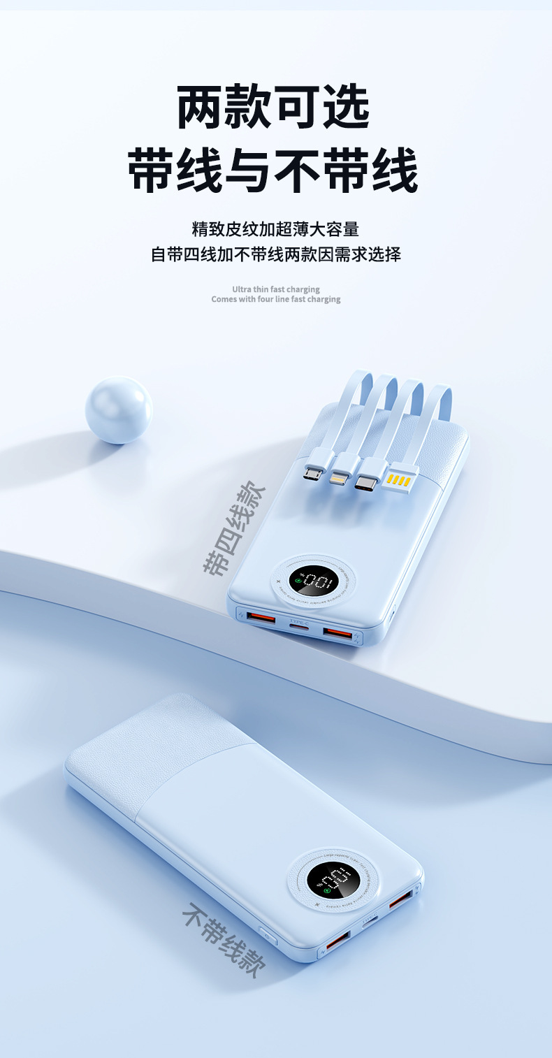 新製品自帯線無線充電宝携帯デジタル表示20000ミリアンペア大容量携帯電話無線移動電源