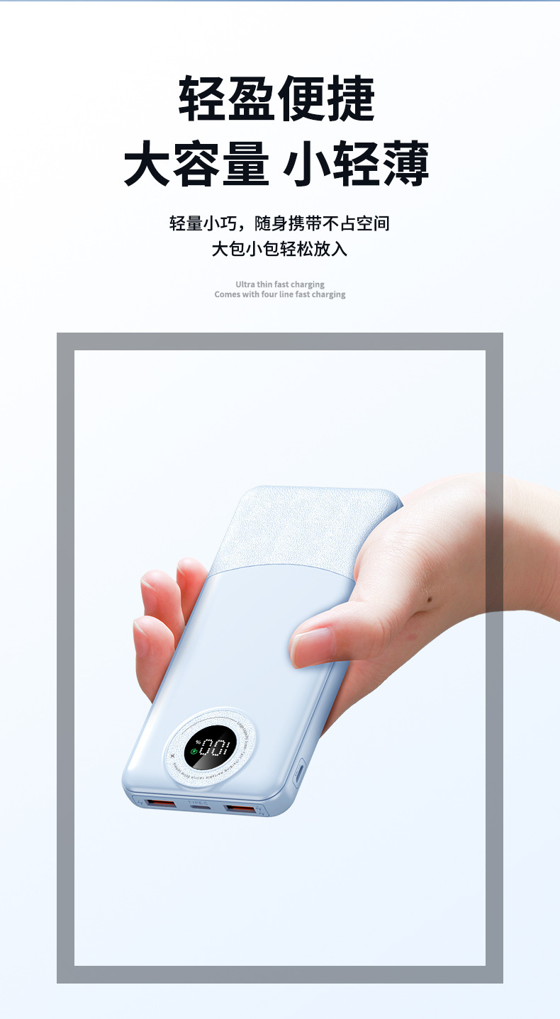 新型多機能充電宝無線磁気吸引充電宝超薄型10000ミリアンペア自帯線移動電源