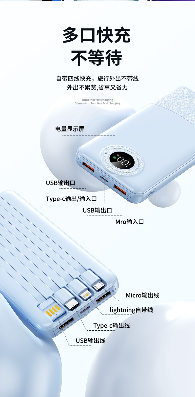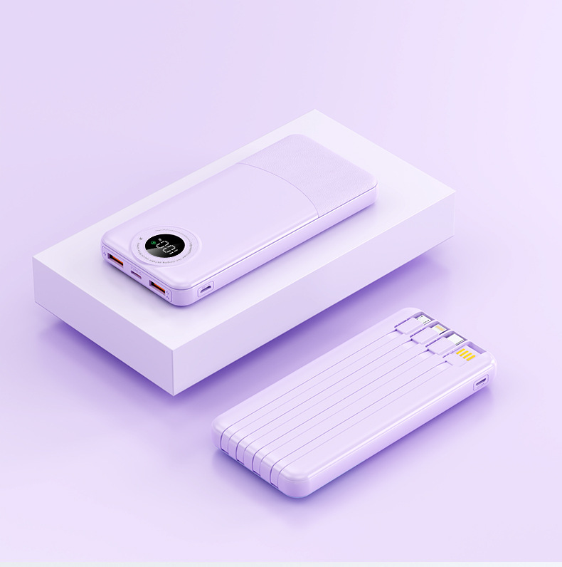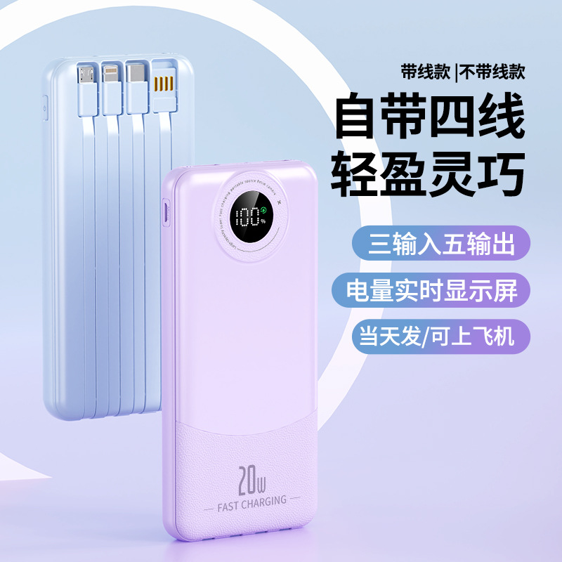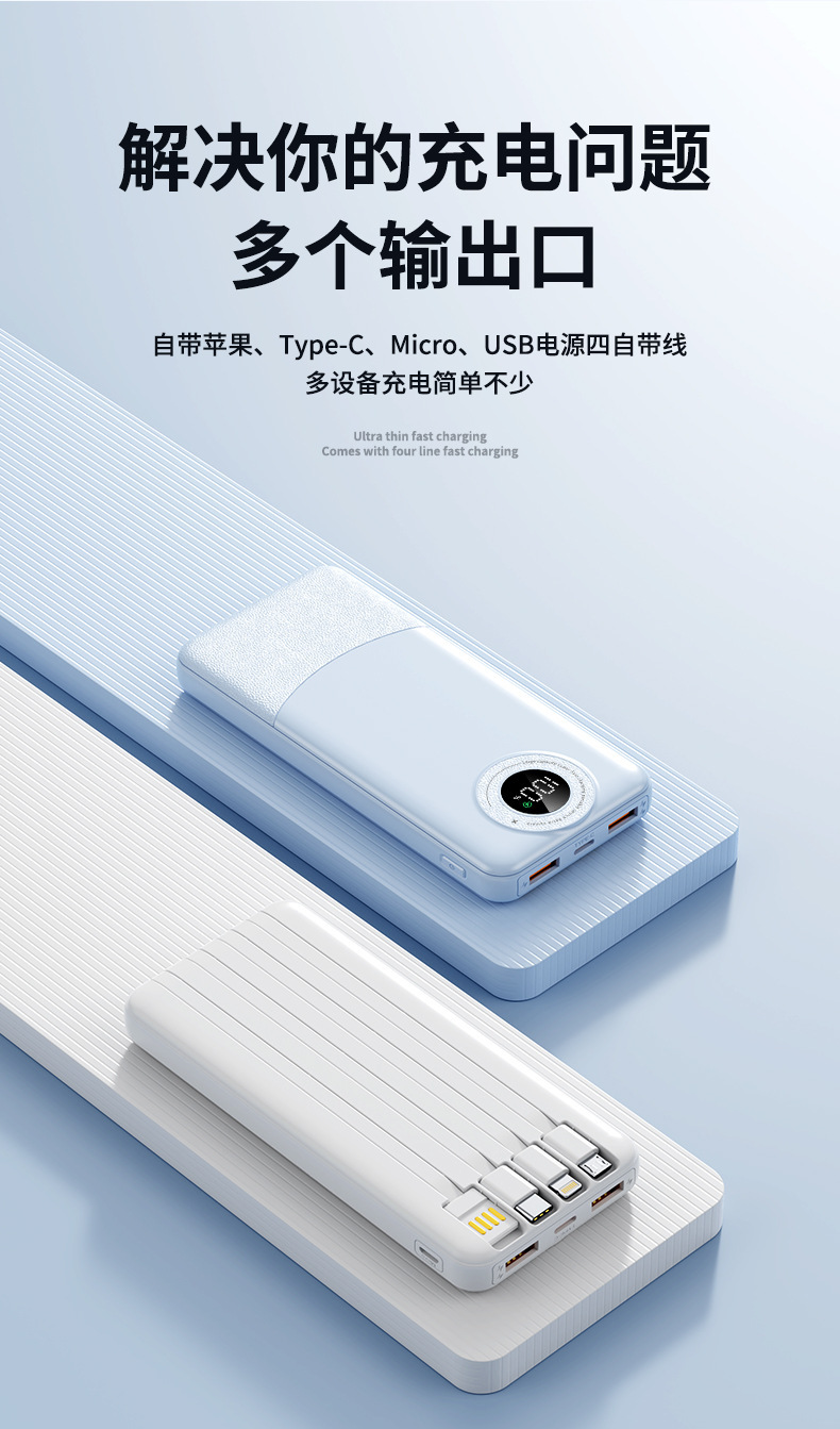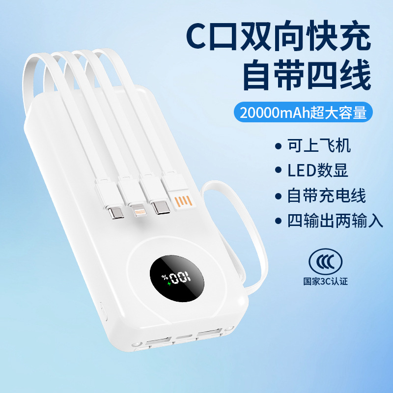 跨境大容量自带4线充电宝20000毫安快充数显power bank移动电源