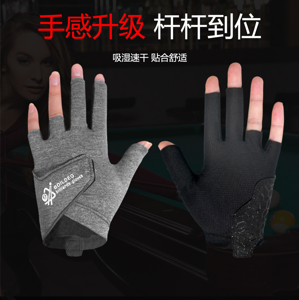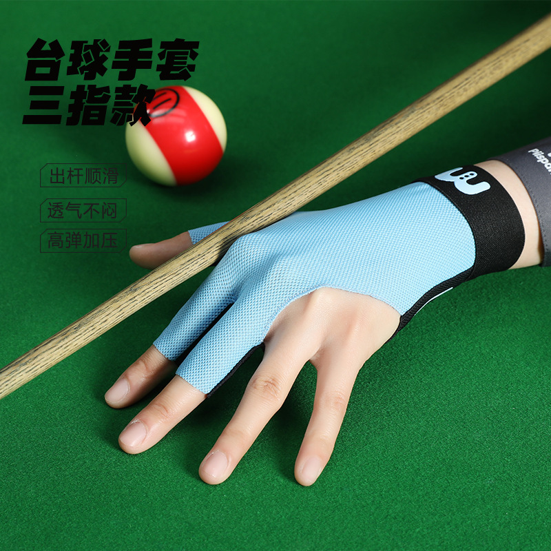 台球手套轻薄透气排汗三指露指手套防滑单只装职业斯诺克桌球手套