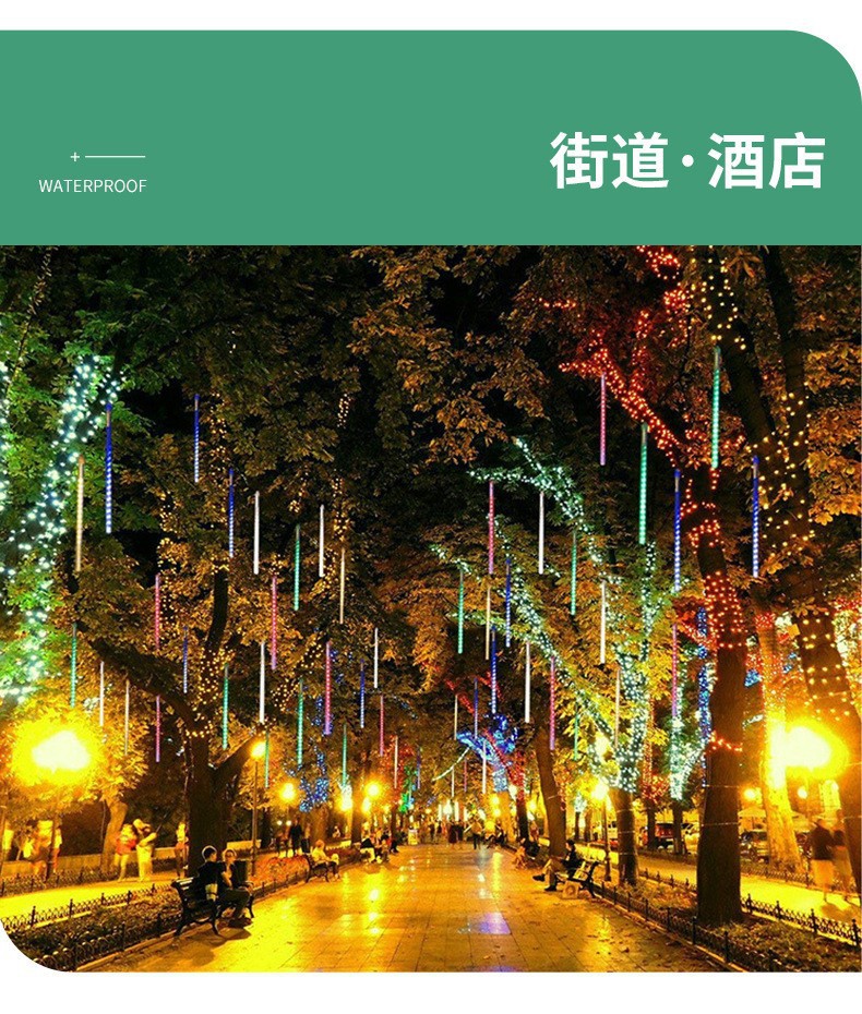 クロスボーダー流星雨ledライトストリングソーラーライト街路灯屋外装飾雰囲気ランプカラフル防水イルミネーションストリップ