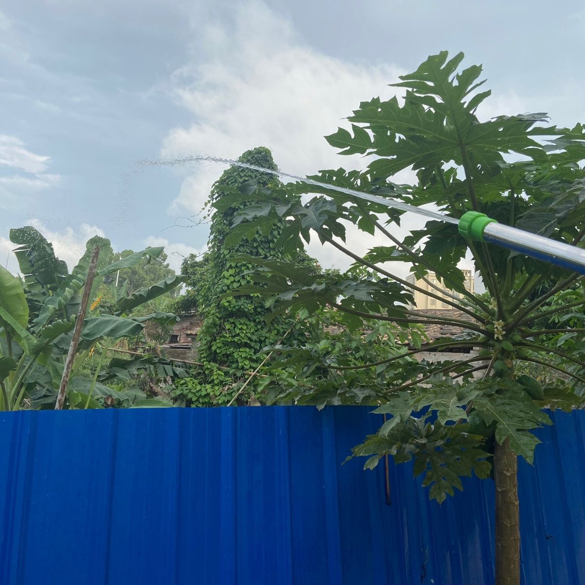 農薬の水鉄砲の噴霧器は花のスプレーの銃に水をやります。