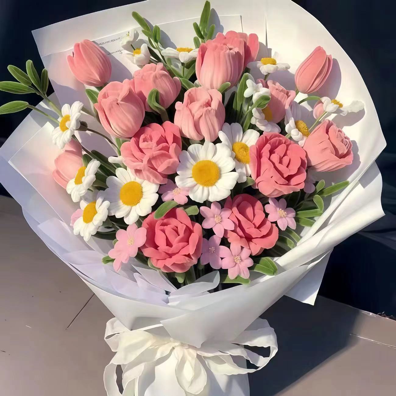 大きなバラとチューリップの花束ツイストスティック手織りDIY素材パッケージ親友やガールフレンドへの誕生日プレゼントとして