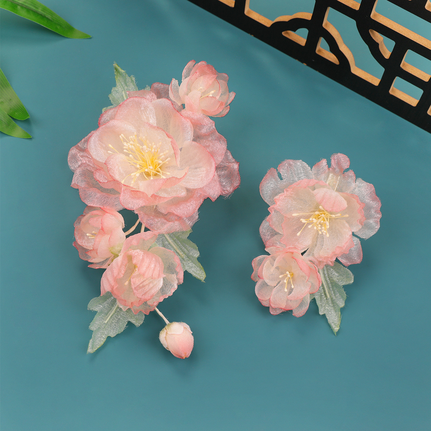 2026春季新款手工制作粉色渐变花朵汉头饰新花朵发夹妆造烫花发饰
